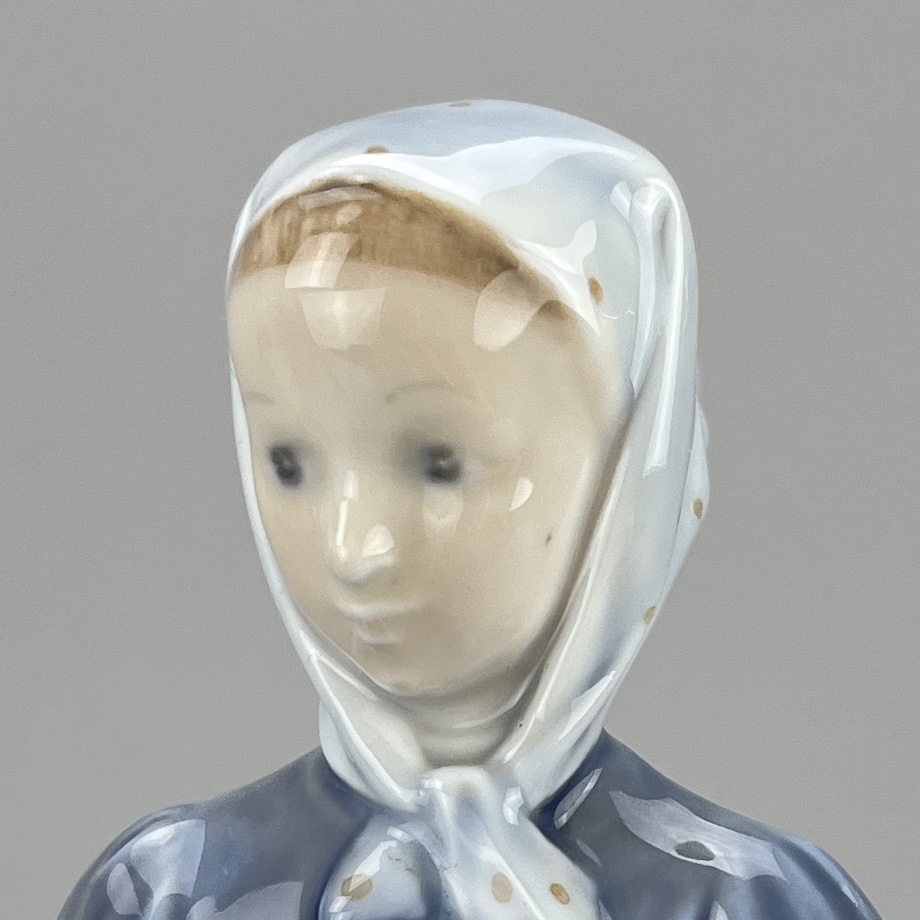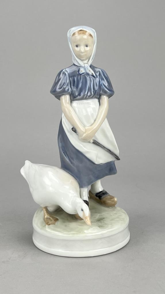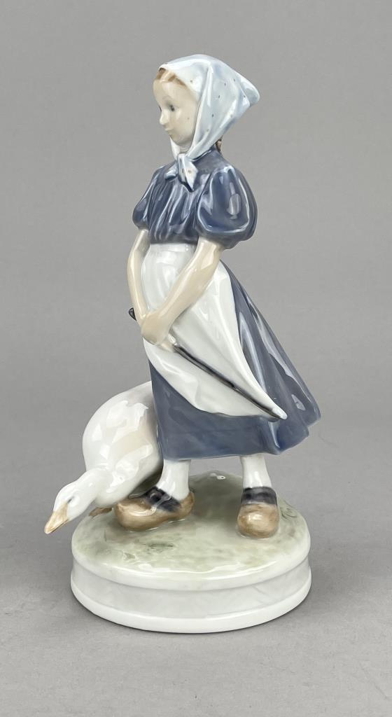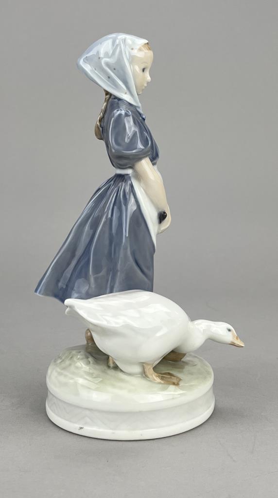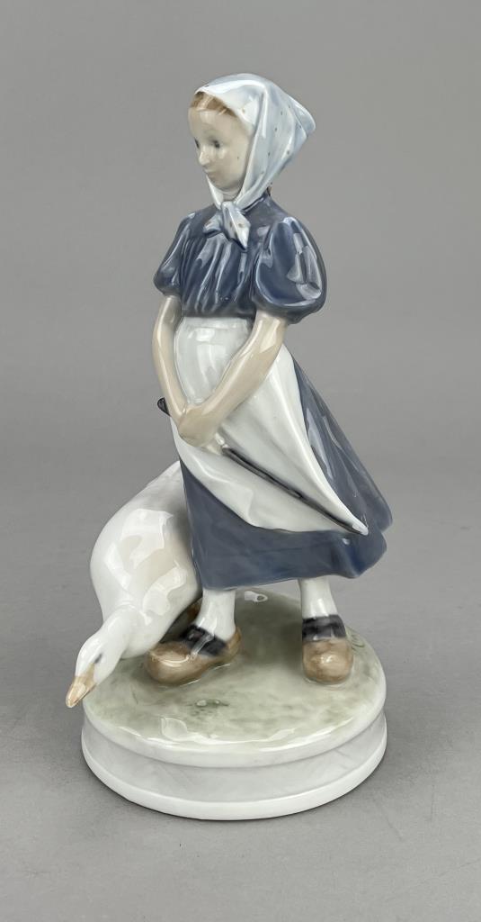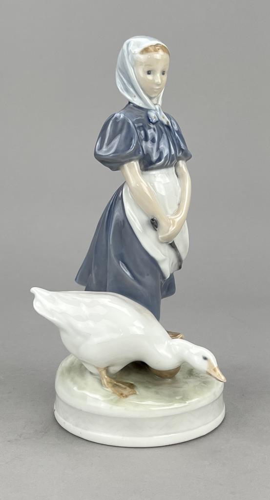 Royal Copenhagen (Denmark) porcelain figurine, “Girl with Geese”, also known sometimes as “Goose Girl”, #527, designed by Christian Thomsen (Danish, 1860-1921), possible date code for 1969-1974, 9-1/4″ (H).