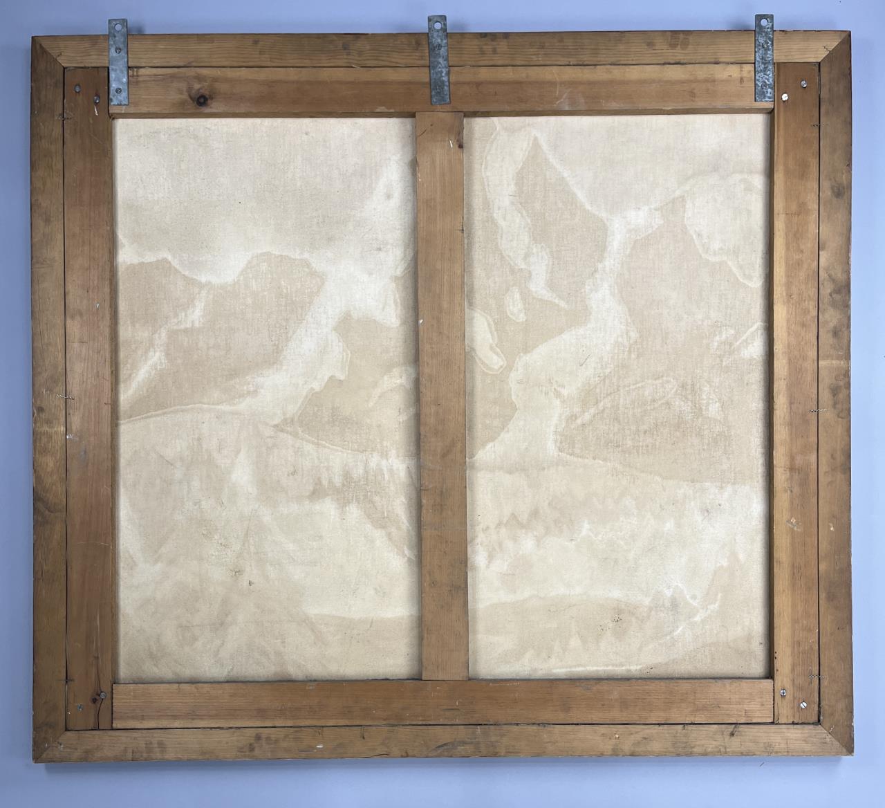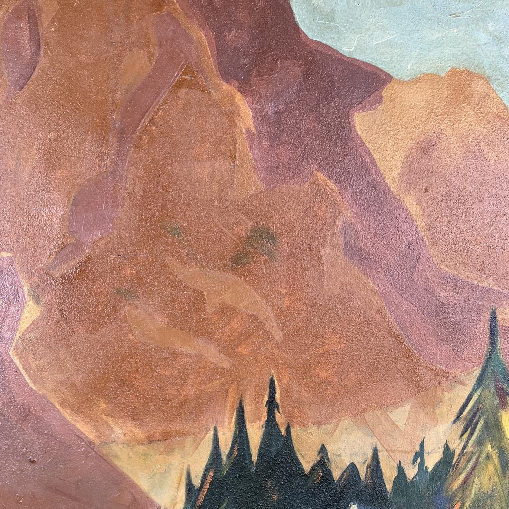 Edward N. Schoenberger (OHIO, 1904-1998), WPA style, oil painting on stretched canvas, depicting a possible Western US landscape, circa early to mid 20th Century, in a period pine frame measuring 46-1/8″ x 52-1/4″.