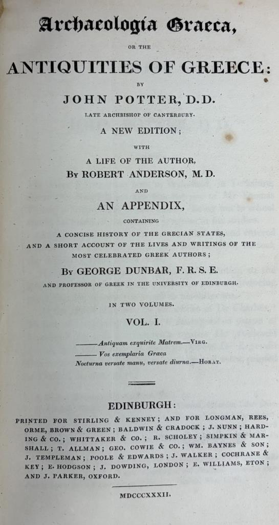John Potter, "Archaeologia Graeca" 2 vols. 1832