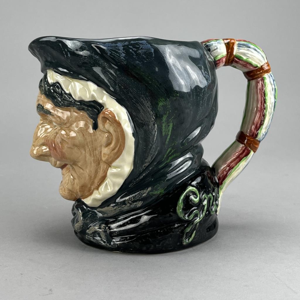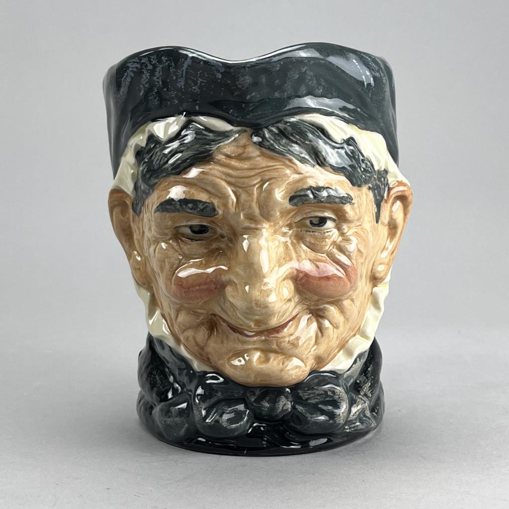 Royal Doulton character jug, “Granny” (with one tooth showing), “A” mark, no model number visible but believed to be D.5521, attributed to Harry Fenton (British, -1953), in production from 1941 to 1983, 6-1/8″ (H).