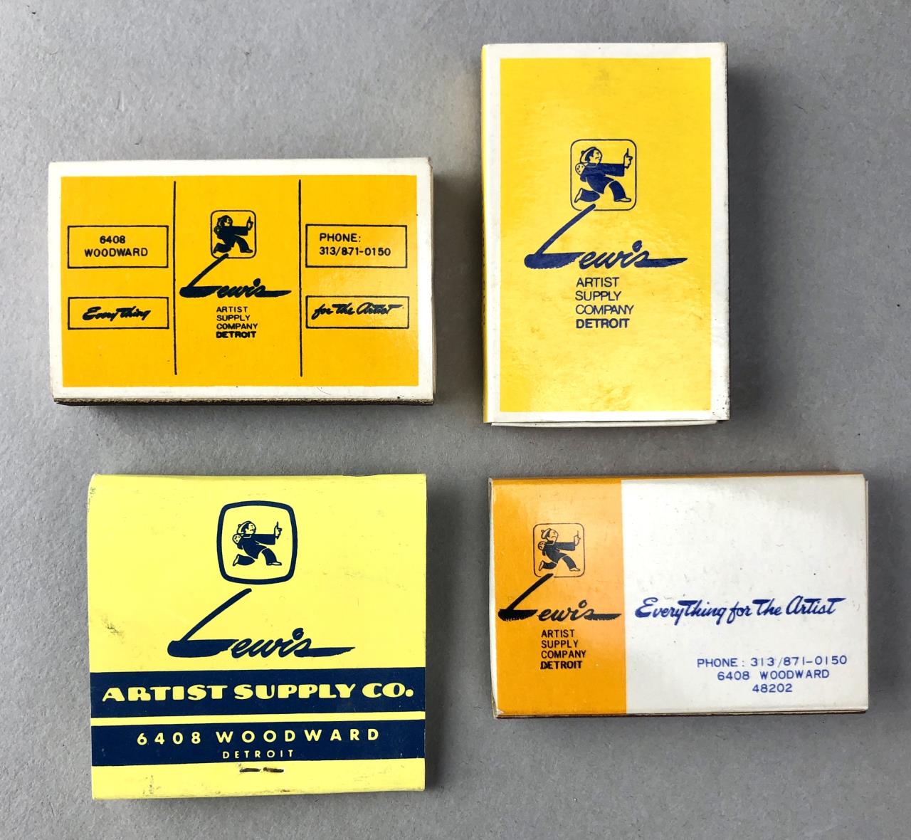 Detroit Michigan matchbooks, including Hudson’s, Lewis Art Supply, Scarab Club, Detroit Yacht Club, S.S. Aquarama, and more; mid 20th Century.