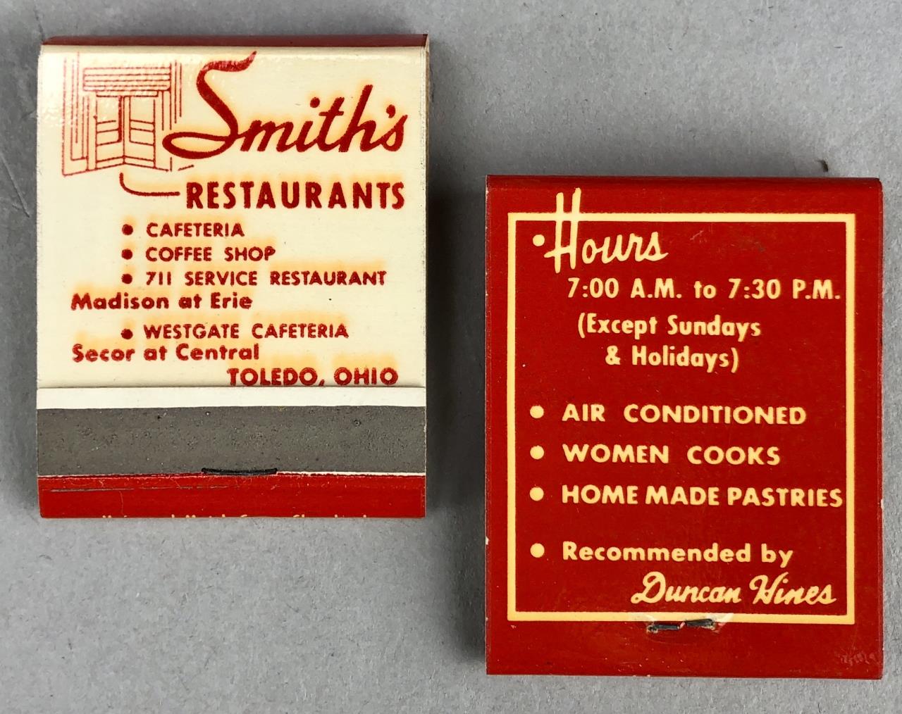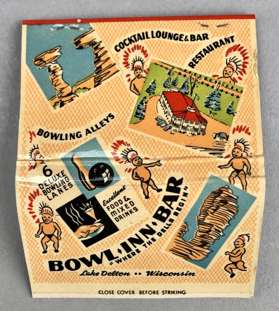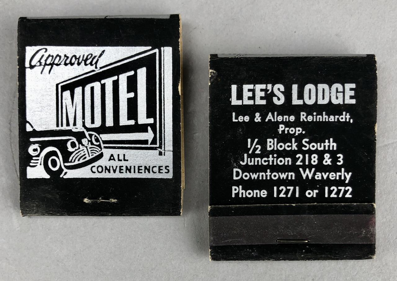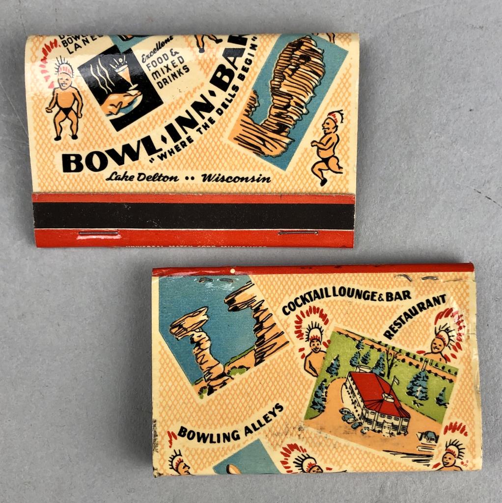 Ohio, Indiana, Iowa, and Wisconsin hotels, motels, bars, and restaurants matchbooks, including The Morris Inn at Notre Dame University, Bowl Inn Bar, Lee’s Lodge, Sky Room, Silver Dome Resort on the Water, and more; mid 20th Century.