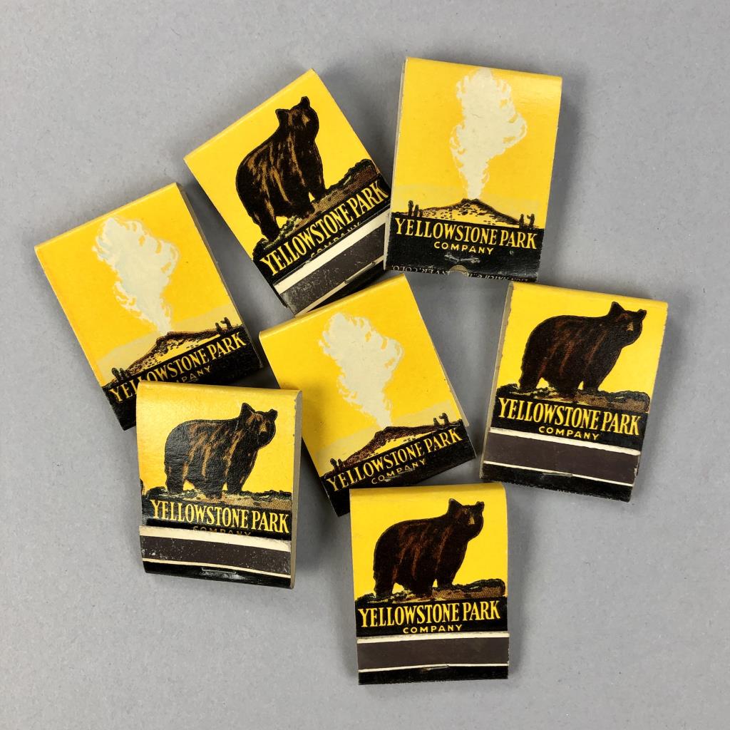 Seven Yellowstone Park Company (WPC), Works Project Administration (WPA) Era, matchbooks. YPC was the major concessioner in Yellowstone National Park from 1936 to 1979, these matchbooks most likely date from the early 1940s.