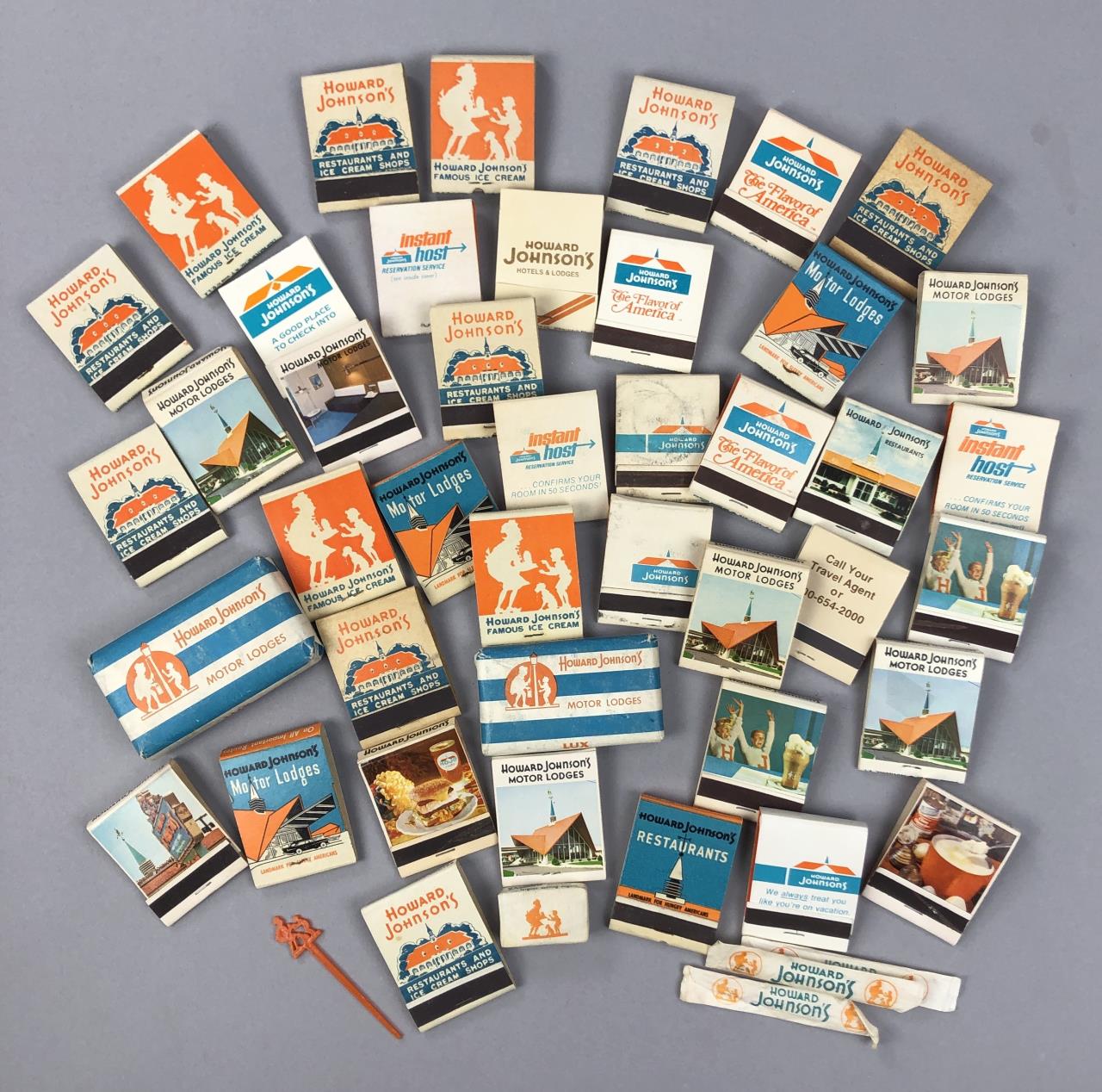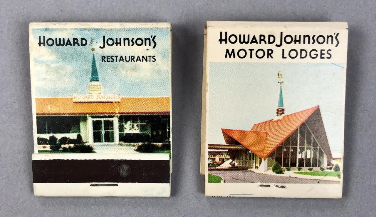 Howard Johnson’s Restaurants and Motor Lodges (1925-2022) matchbooks, soaps, and toothpicks; mid 20th Century.