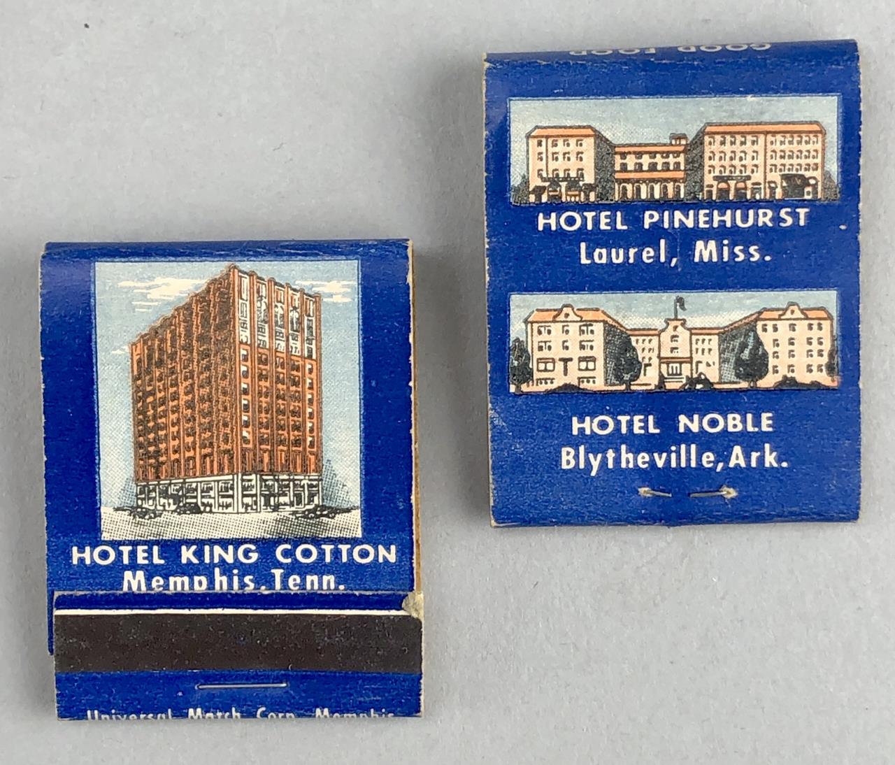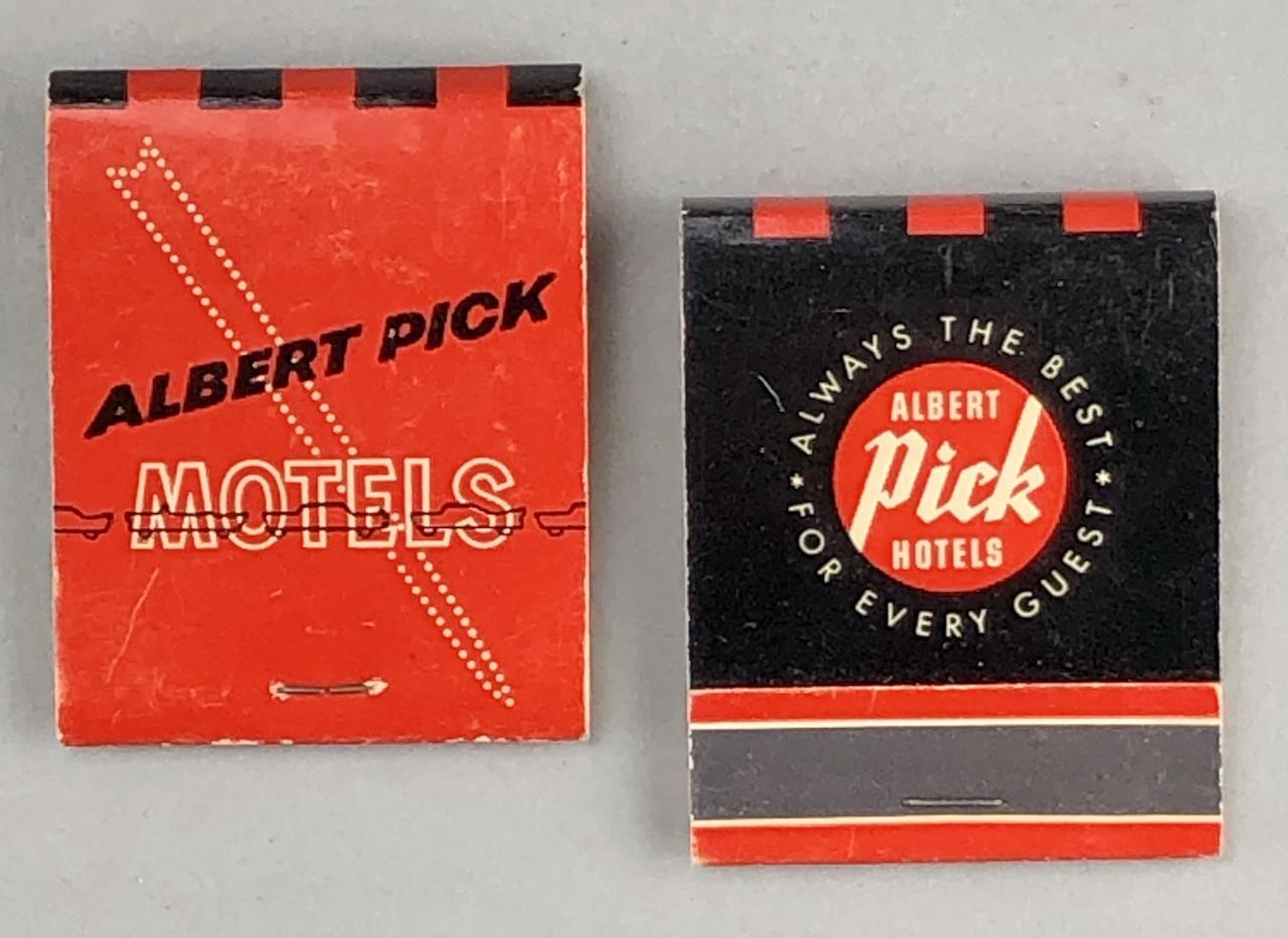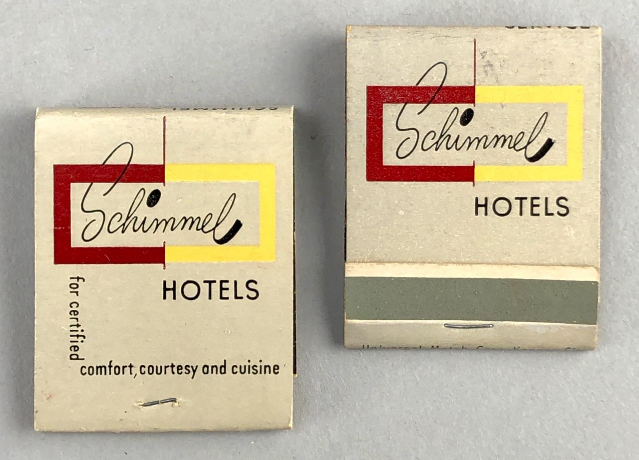 Matchbooks from various hotels, including Boss Hotels, Hyatt, Ramada, Travel Lodge, Quality Inn, Westin, Stouffer Hotels and Resorts, Albert Pick, Treadway Inns, Schimmel Hotels, and more; mid 20th Century.
