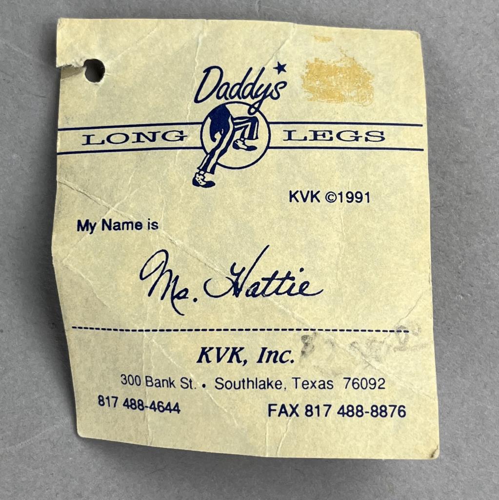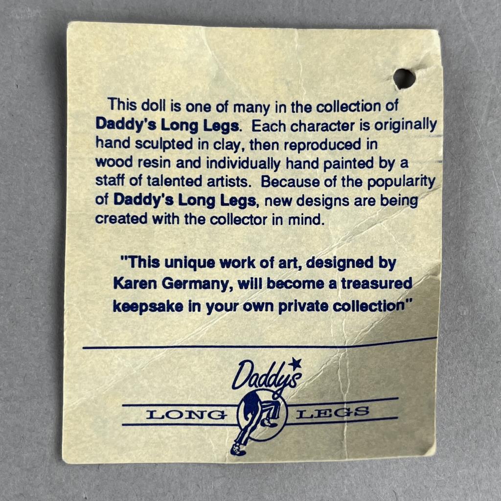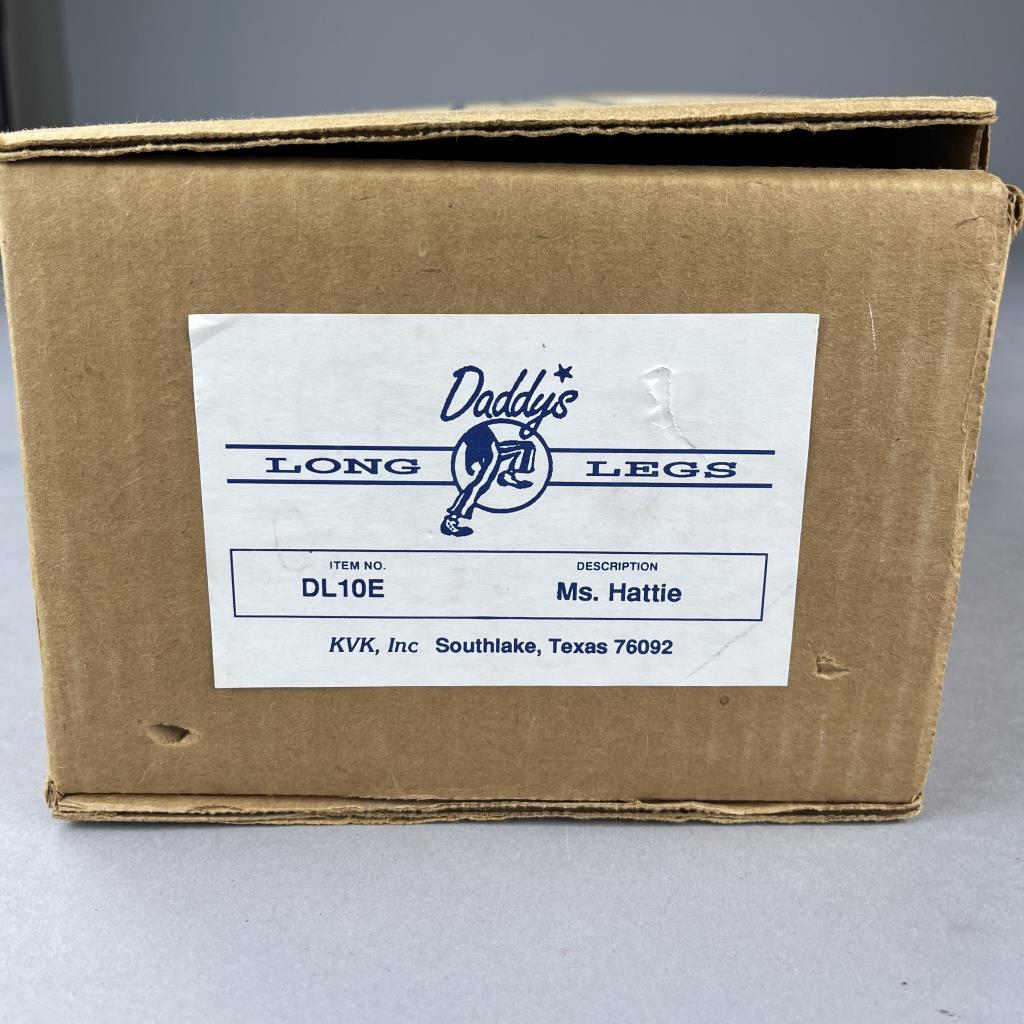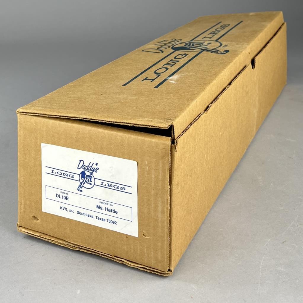 Daddy Long Legs (established 1985), “Ms. Hattie” doll (#DL 10E), based on the original work of Karen Germany (American, b. 1949), and produced by KVK, Inc (Southlake Texas), wood resin and cloth, approximately 20″ (L), includes box.