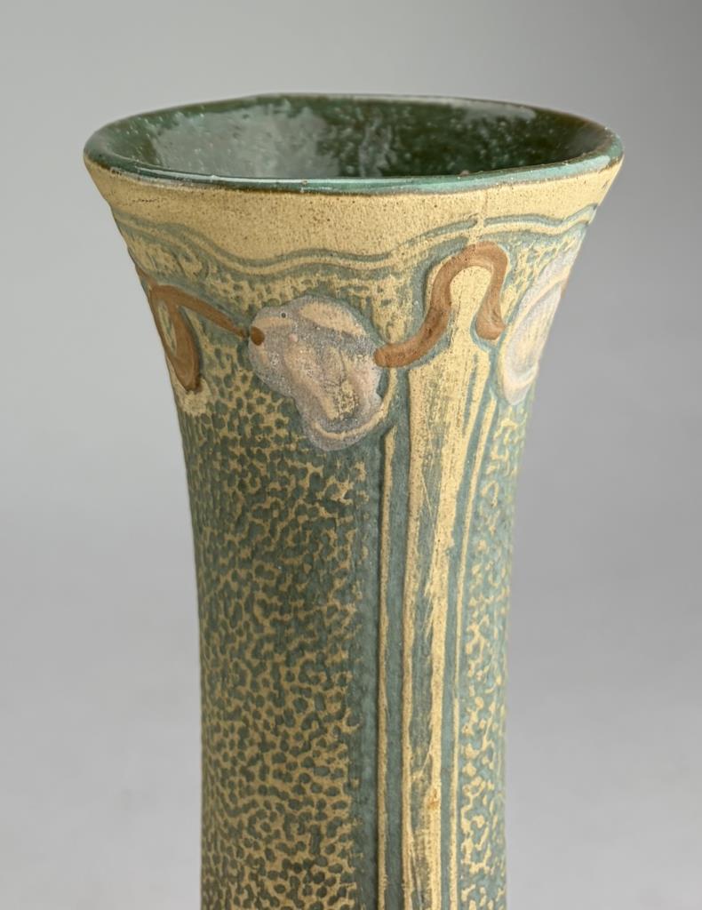 Robinson Ransbottom Pottery (Roseville, Ohio) vase in the “Luxor” pattern, circa 1910s, 9-1/4″ (H).