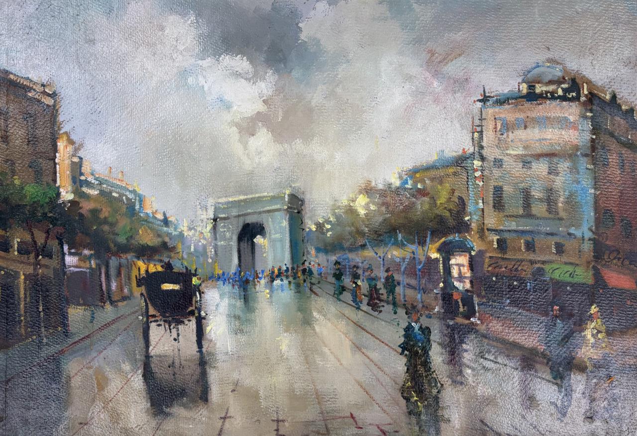 Impressionistic Oil Painting Parisian Street Scene