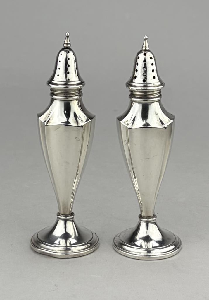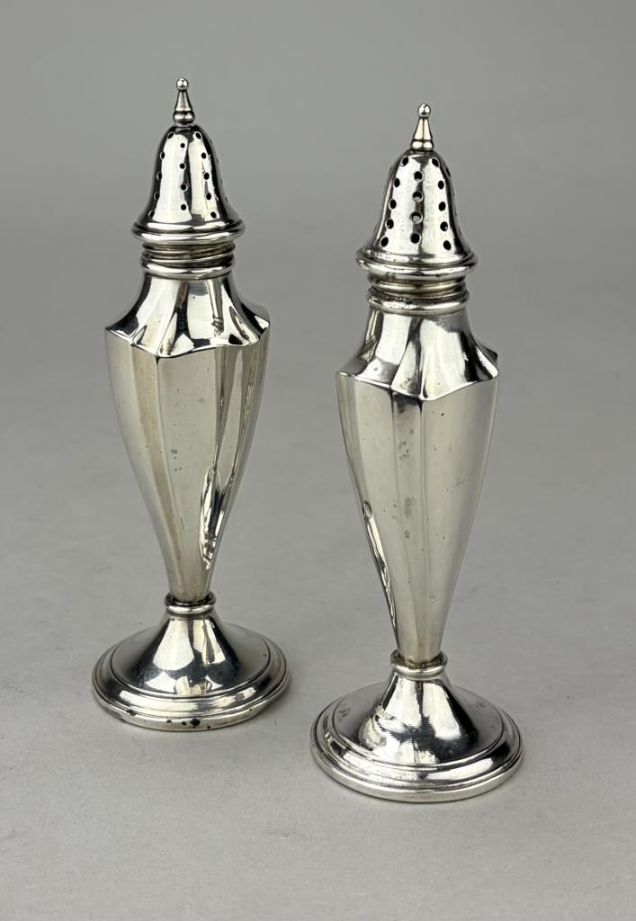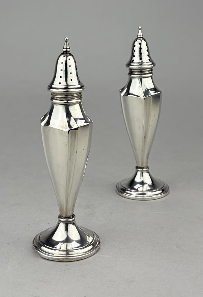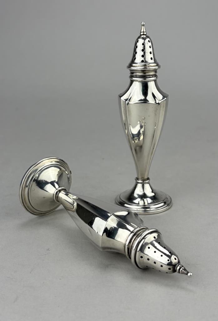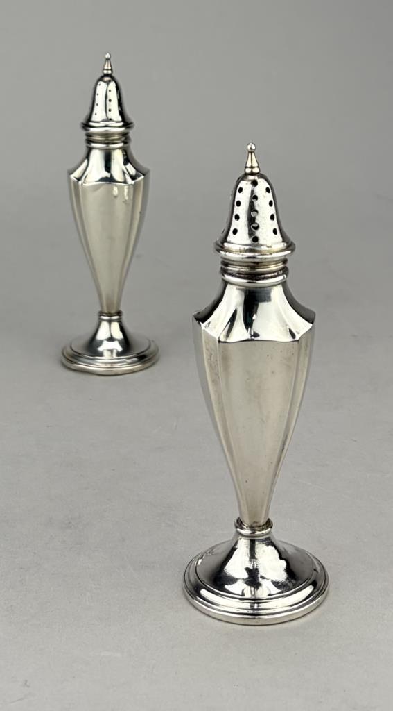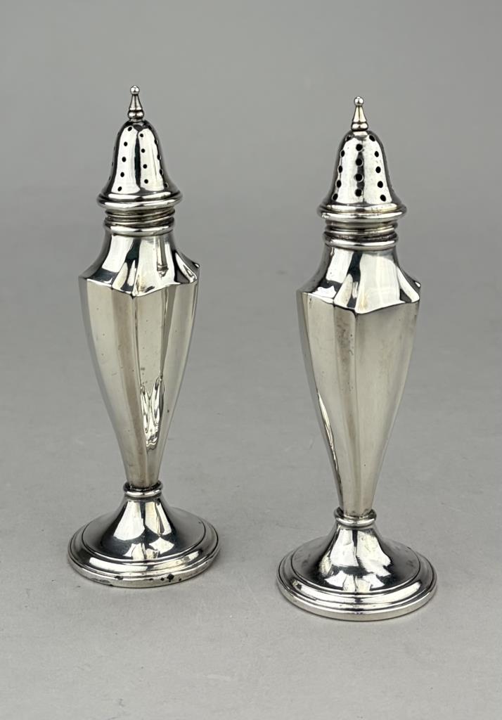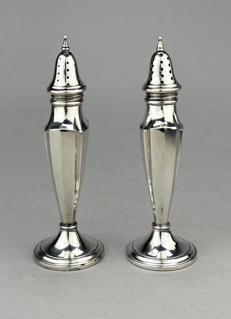 Webster Company (North Attleboro, Massachusetts) weighted sterling silver salt and pepper shaker set, marked on bottom, early 20th Century, 5-1/2″ (H).