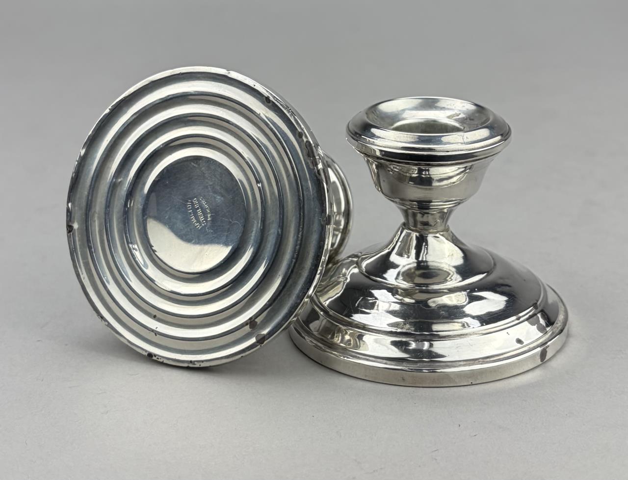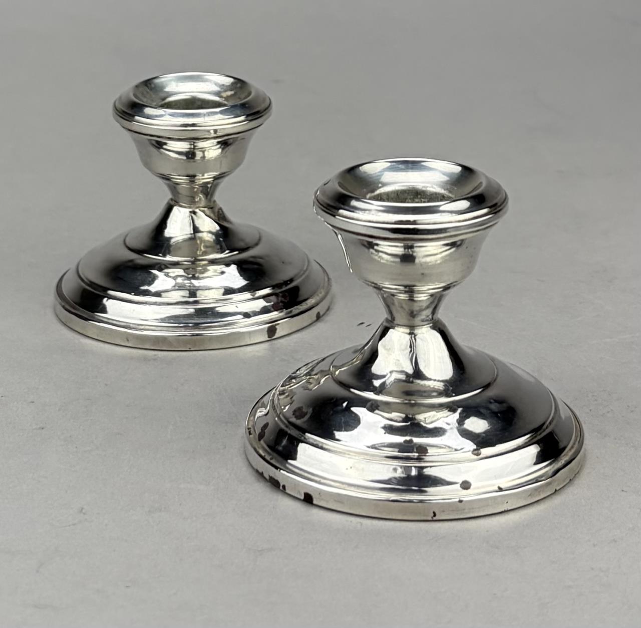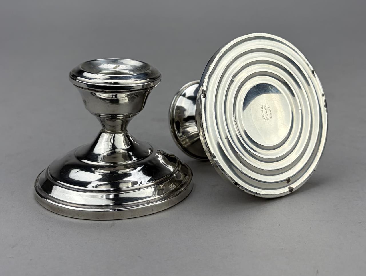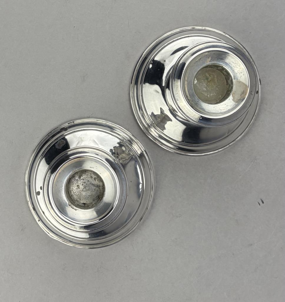 Pair of Hamilton weighted sterling silver candle holders, marked on bottom, early to mid 20th Century, 2-3/8″ (H).