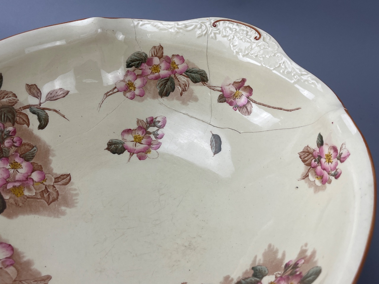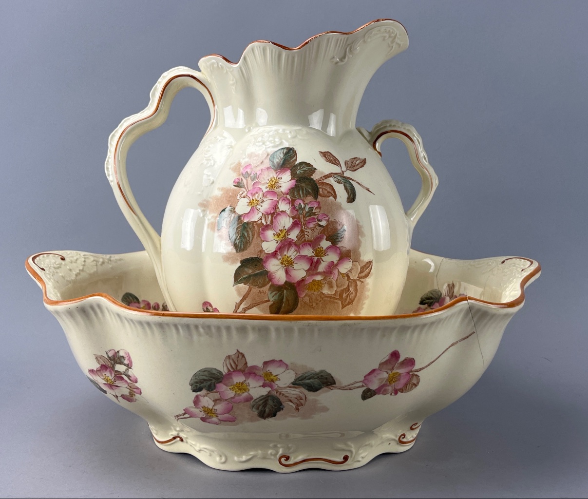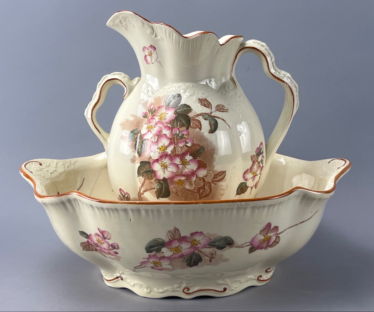 Ceramic Ewer and Basin Set with Floral Decoration