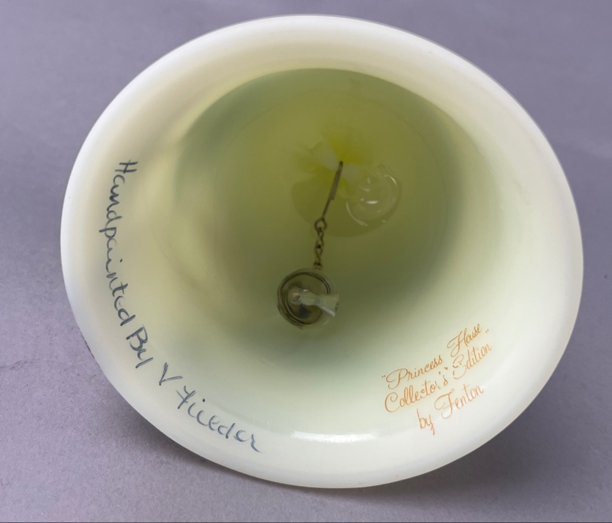 Fenton Hand-Painted Glass Bell, 1980, by V. Tiedtler