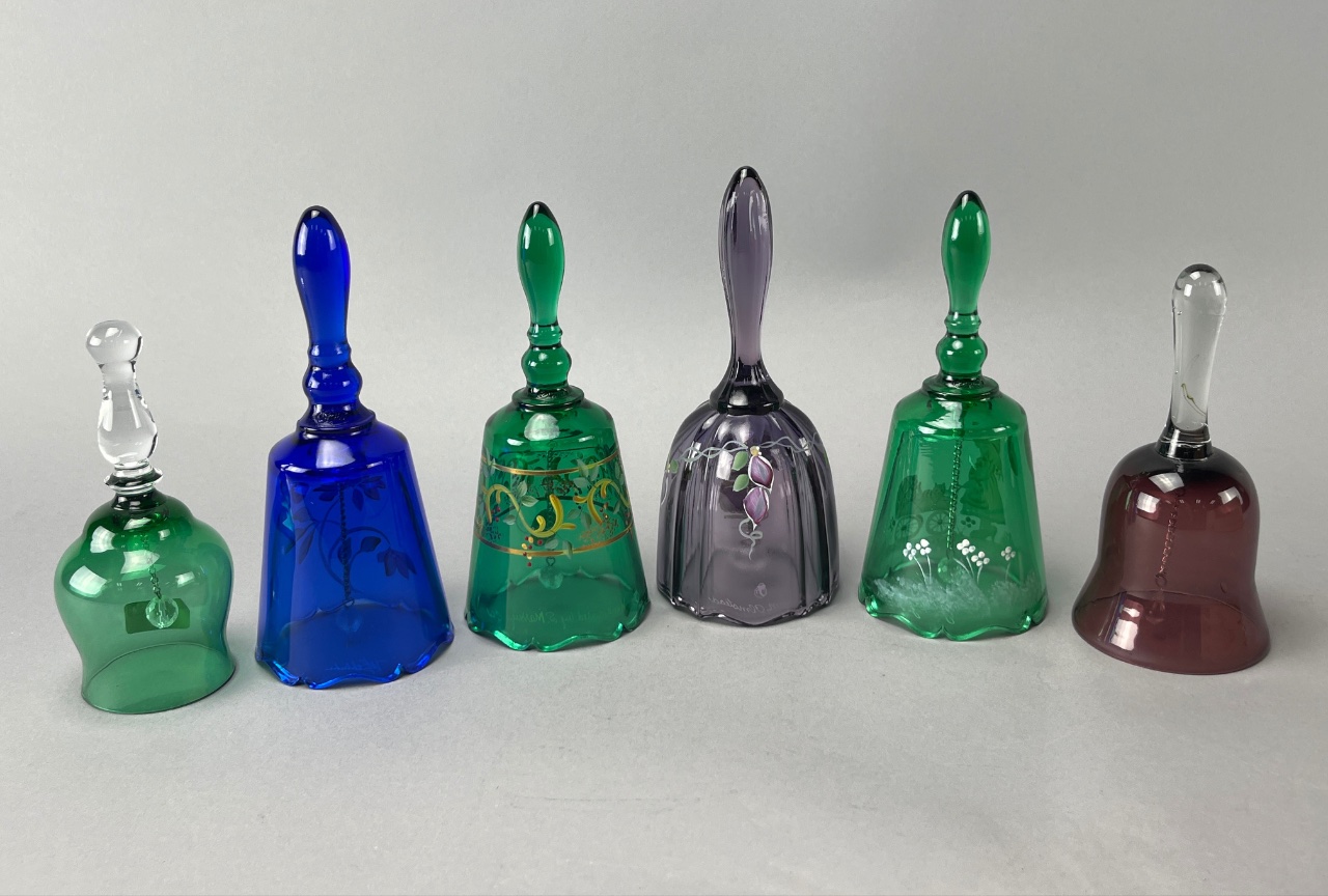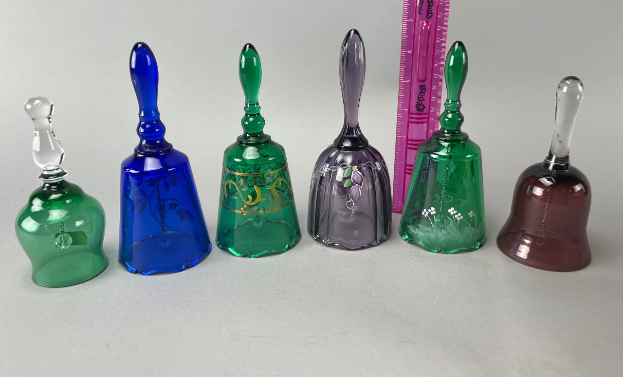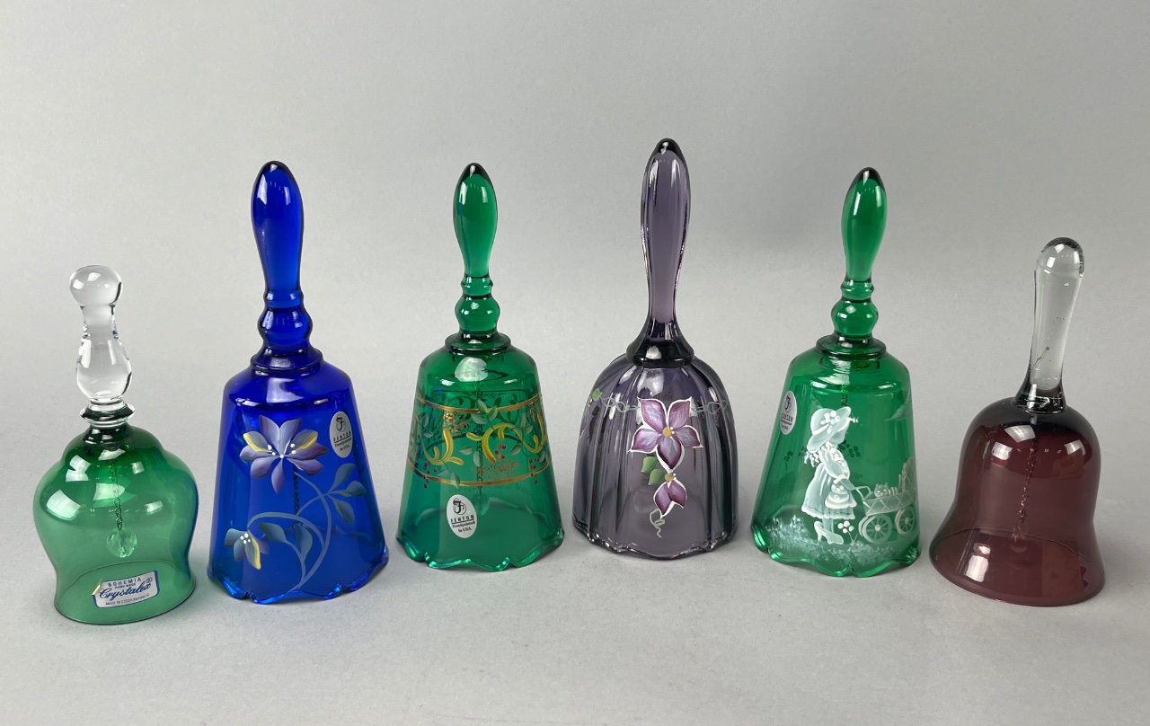 Set of Six Decorative Glass Bells, Fenton and Bohemia