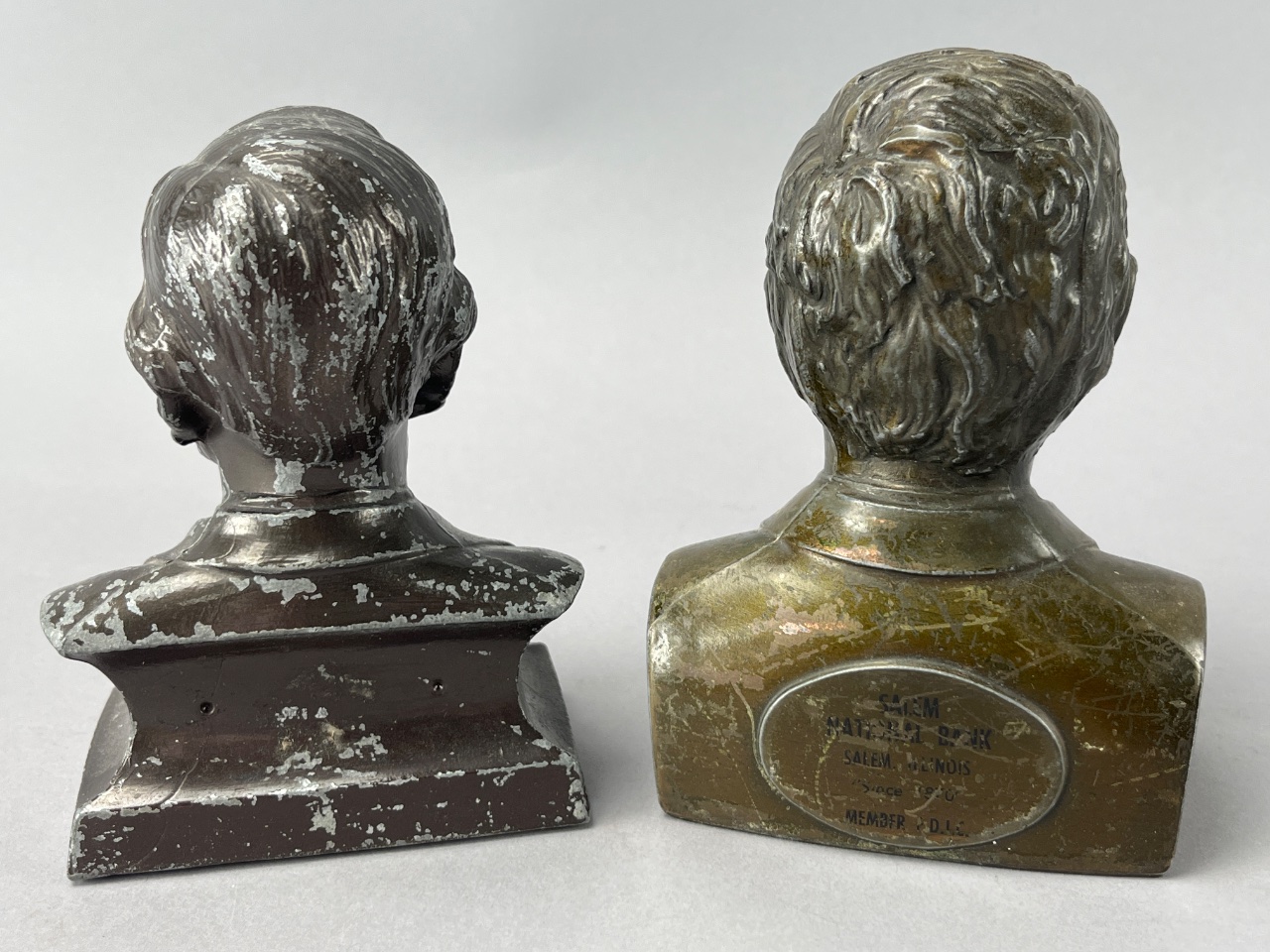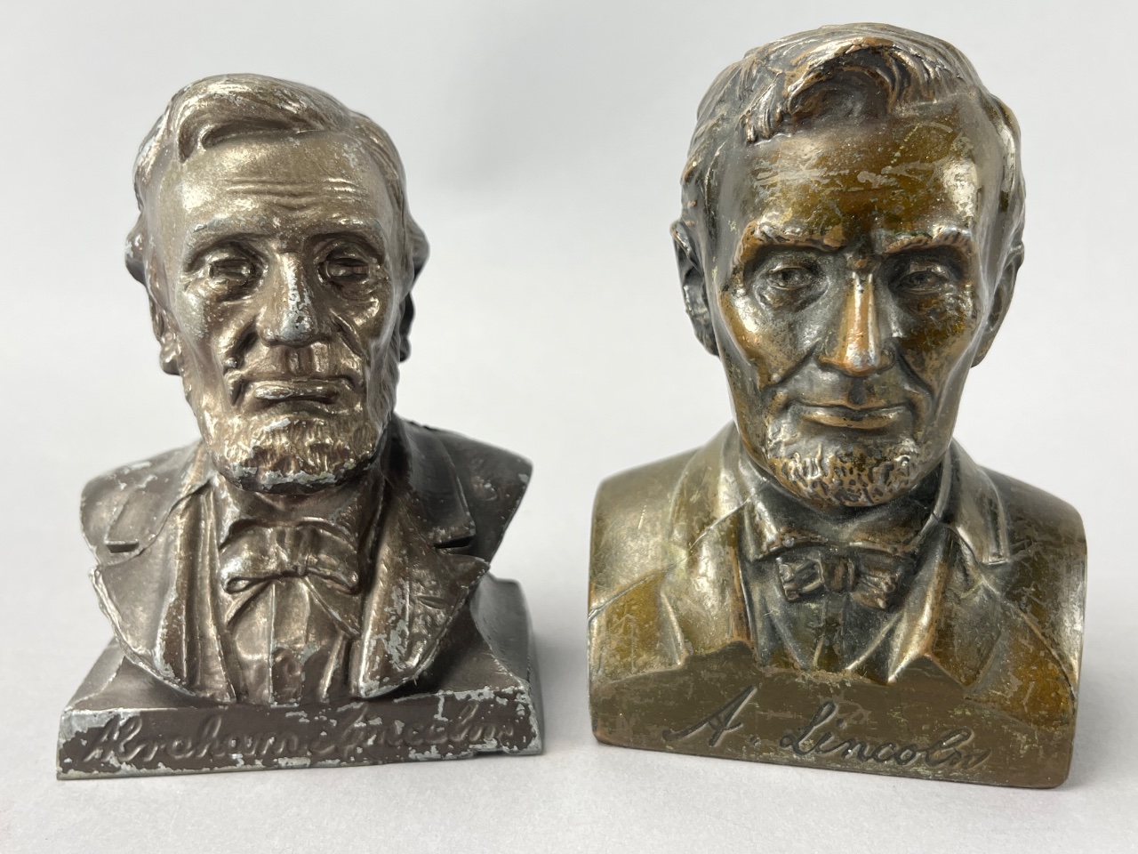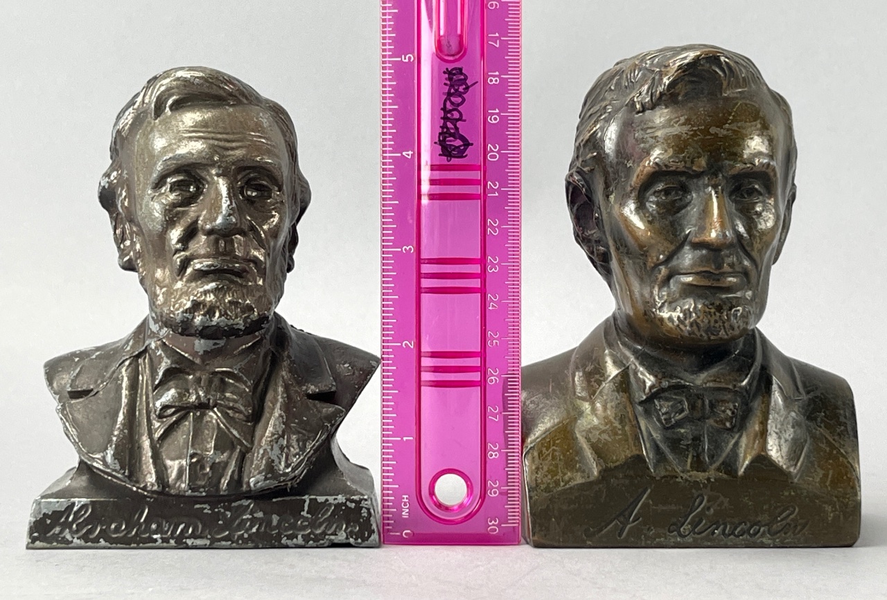 Pair of Abraham Lincoln Metal Busts with Bank Plaque