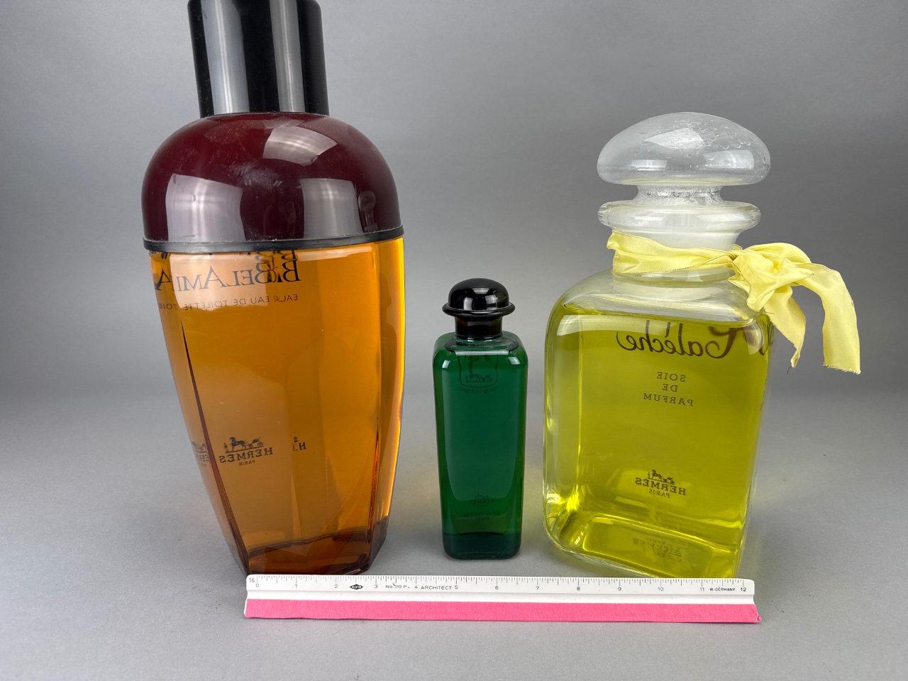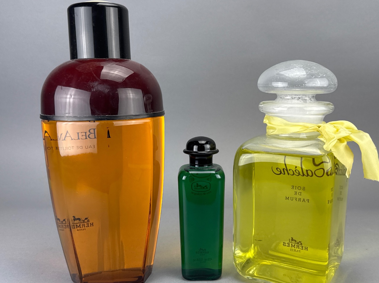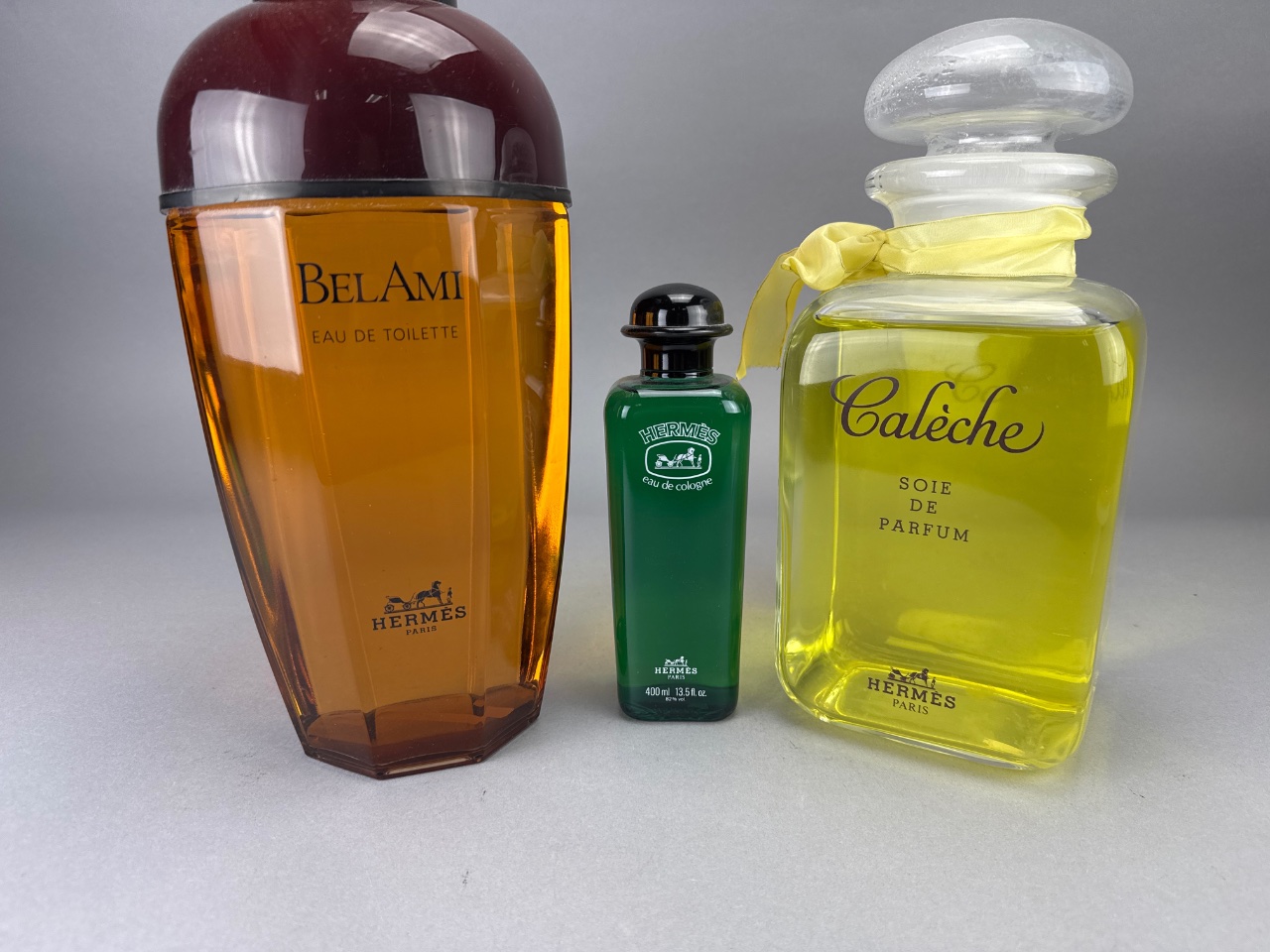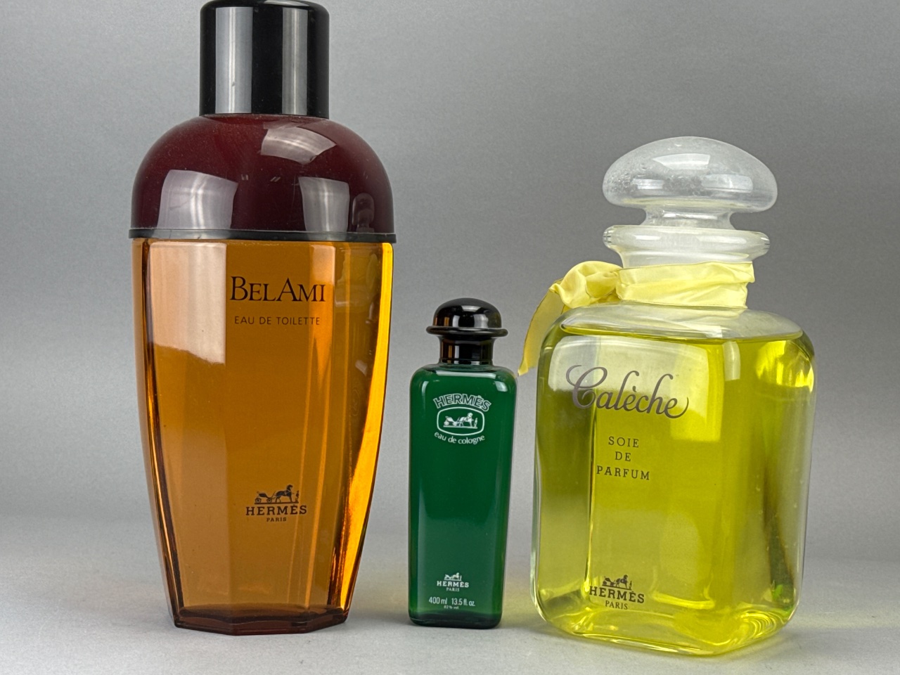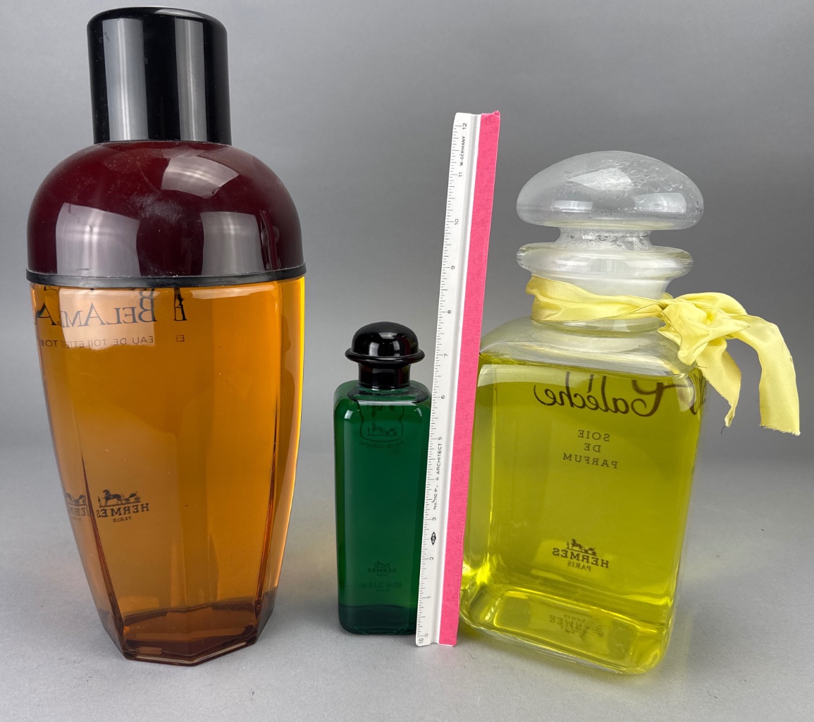 3 Hermes Perfume Display Bottles: BelAmi, Eau de Cologne, Calèche