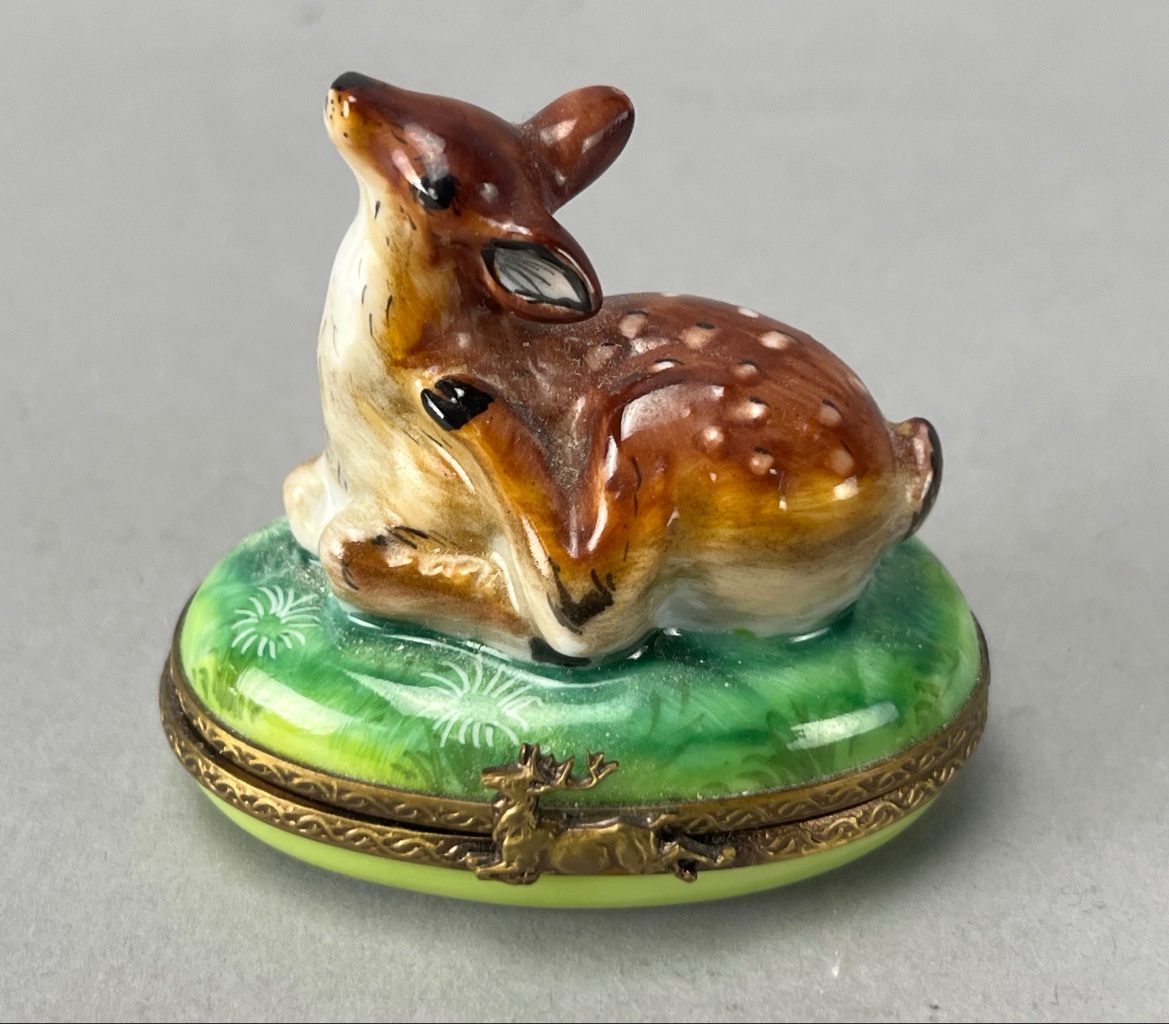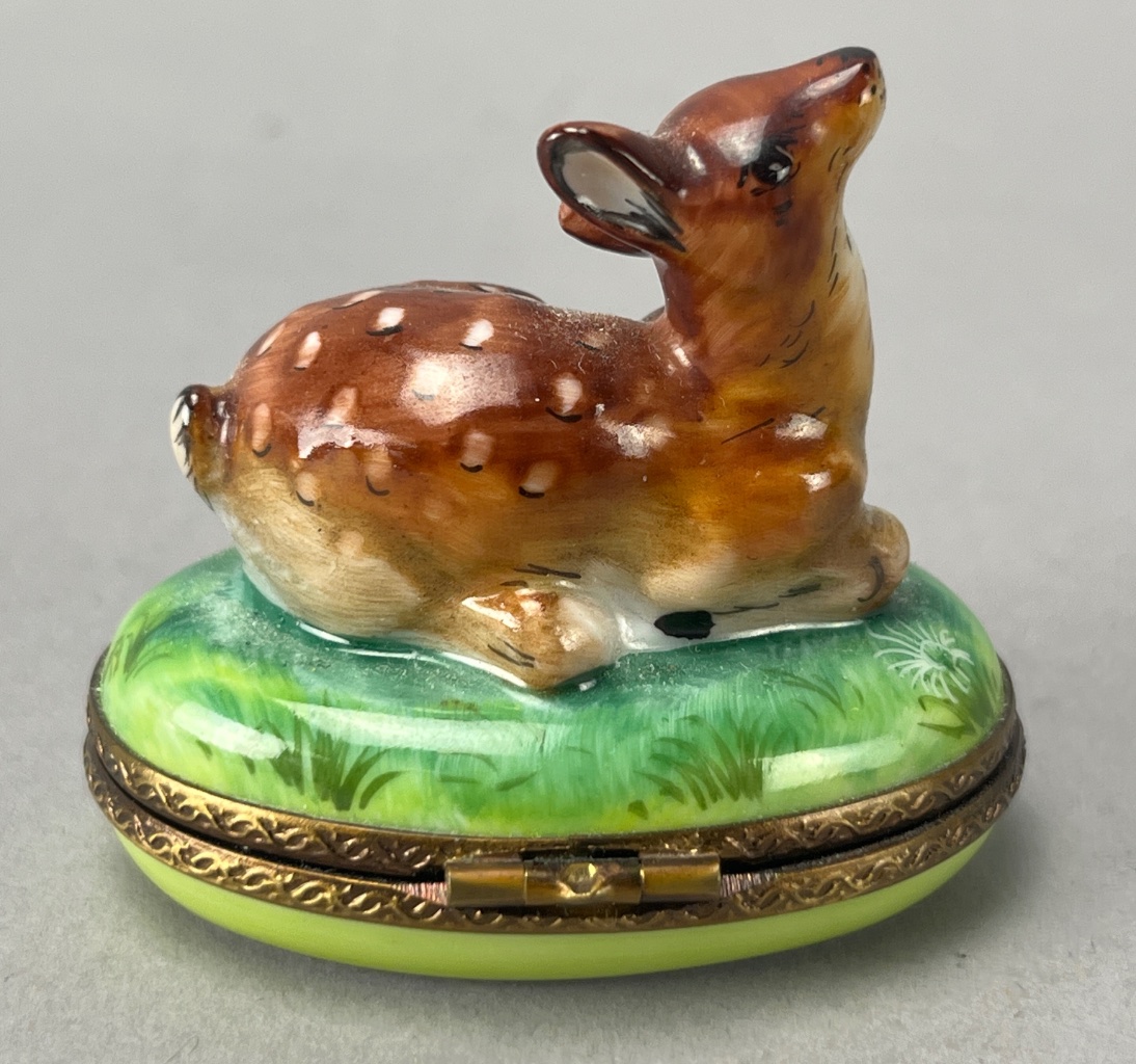 Limoges Porcelain Deer Trinket Box with Gold Trim