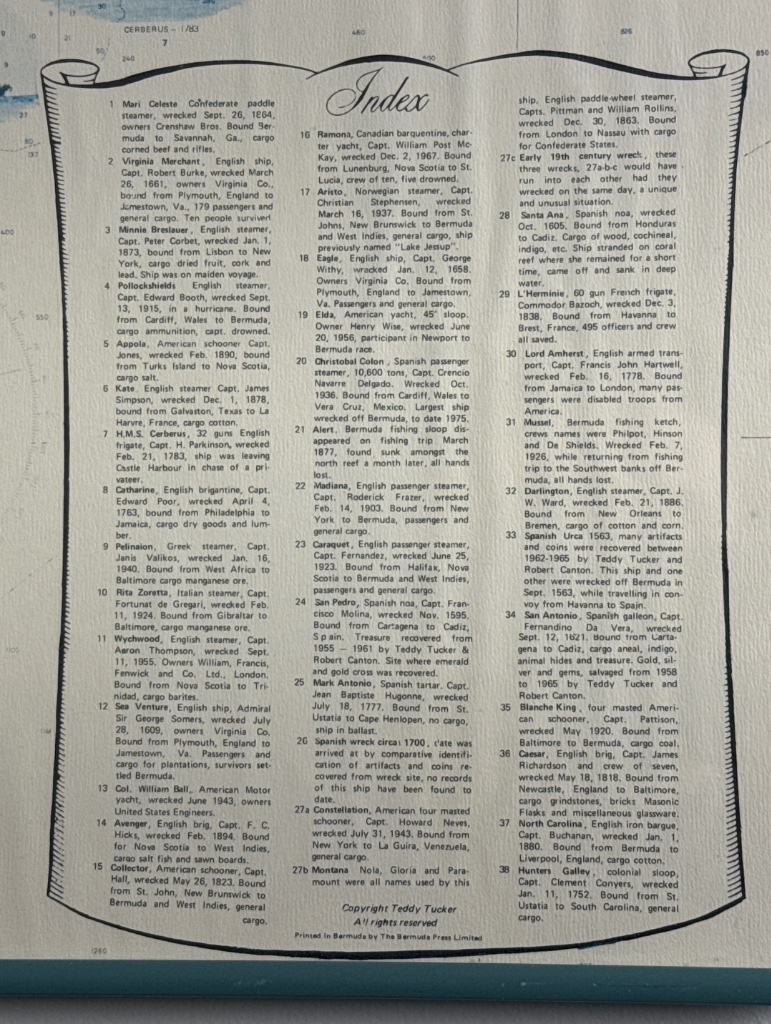Teddy Tucker Nautical Map of Bermuda with Shipwreck Index