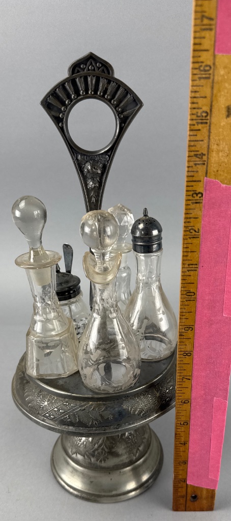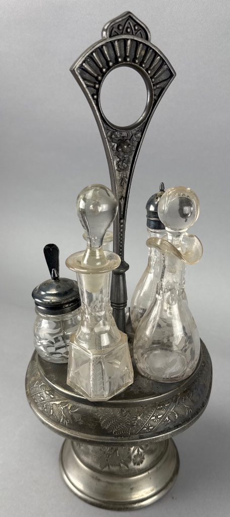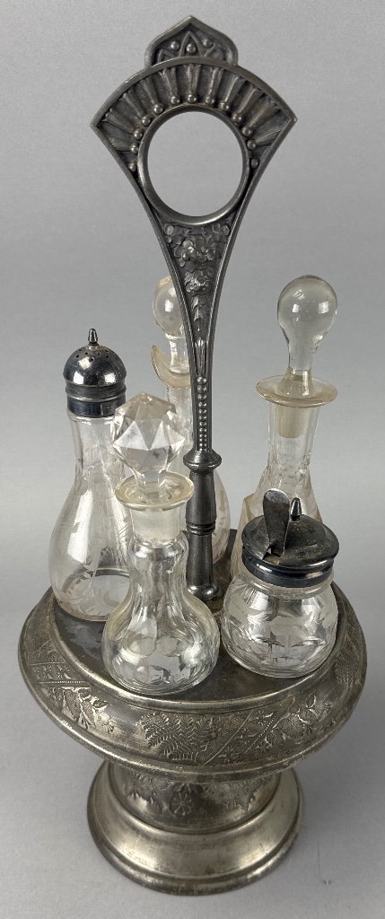 M. R. Co. Victorian Glass and Metal Condiment Set
