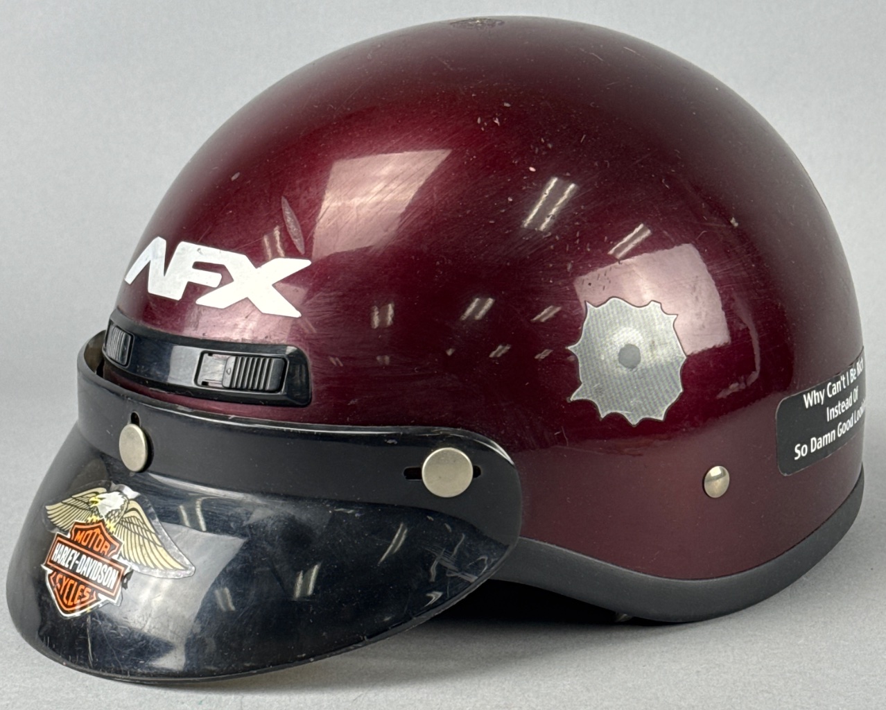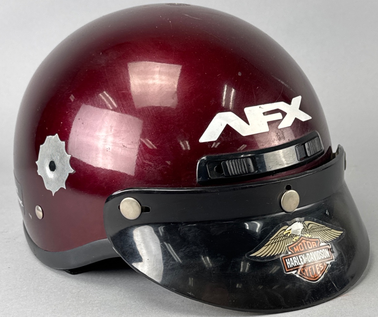 AFX Maroon Motorcycle Helmet with Harley-Davidson Stickers