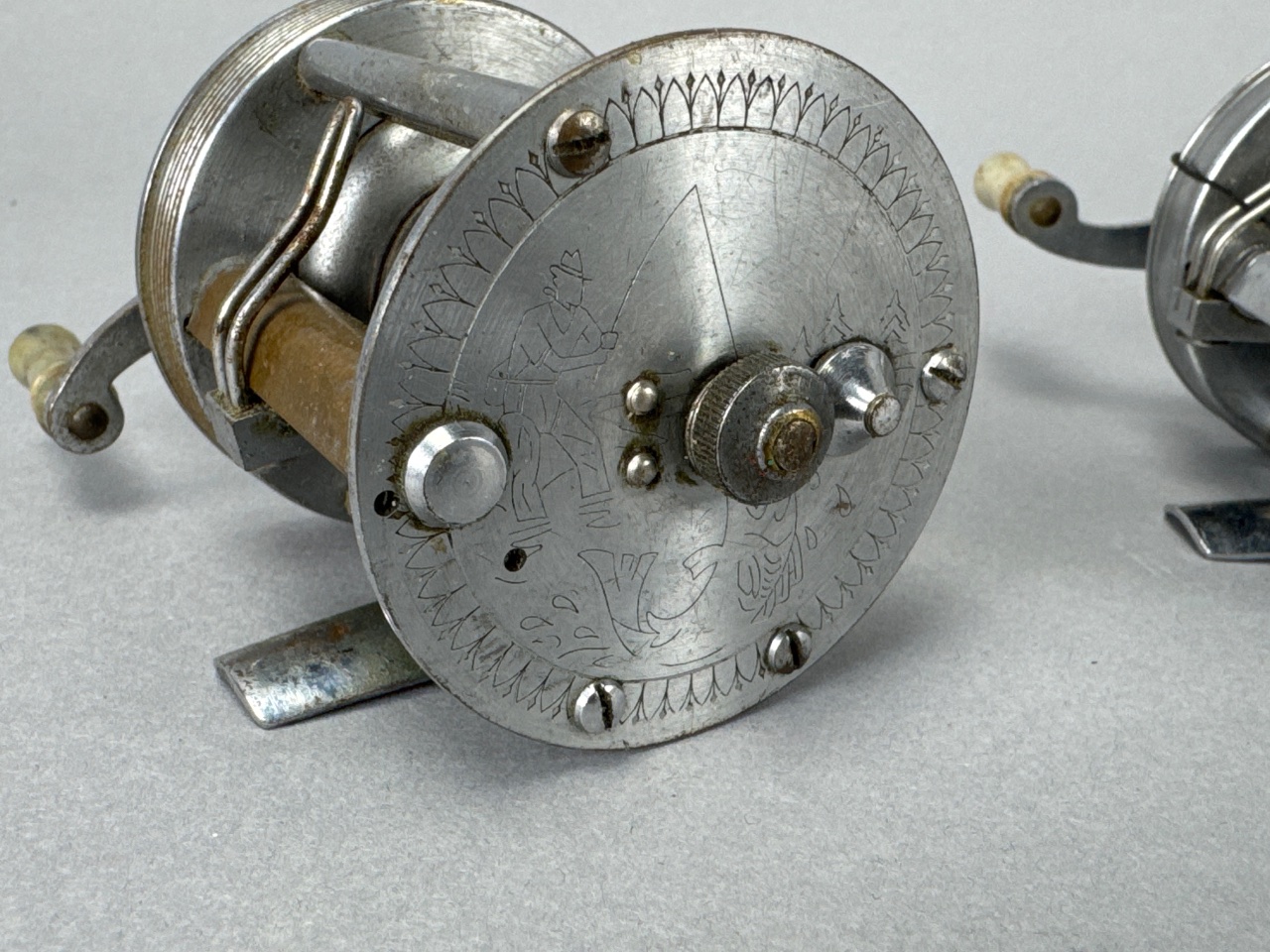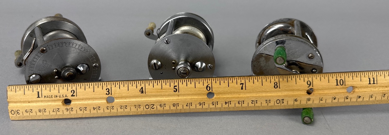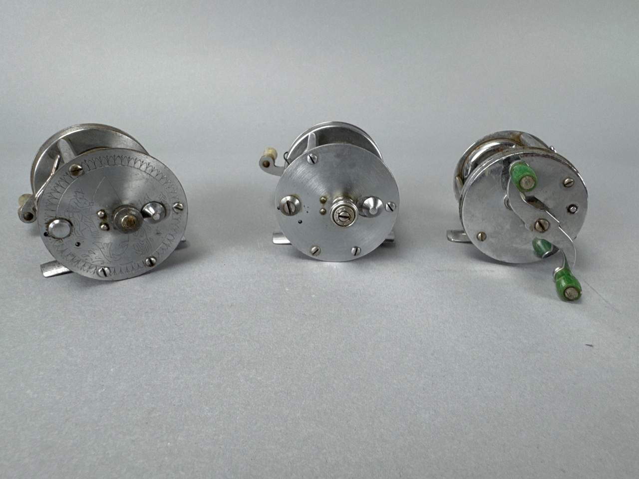 Group of Three Vintage Fishing Reels with Distinct Marks