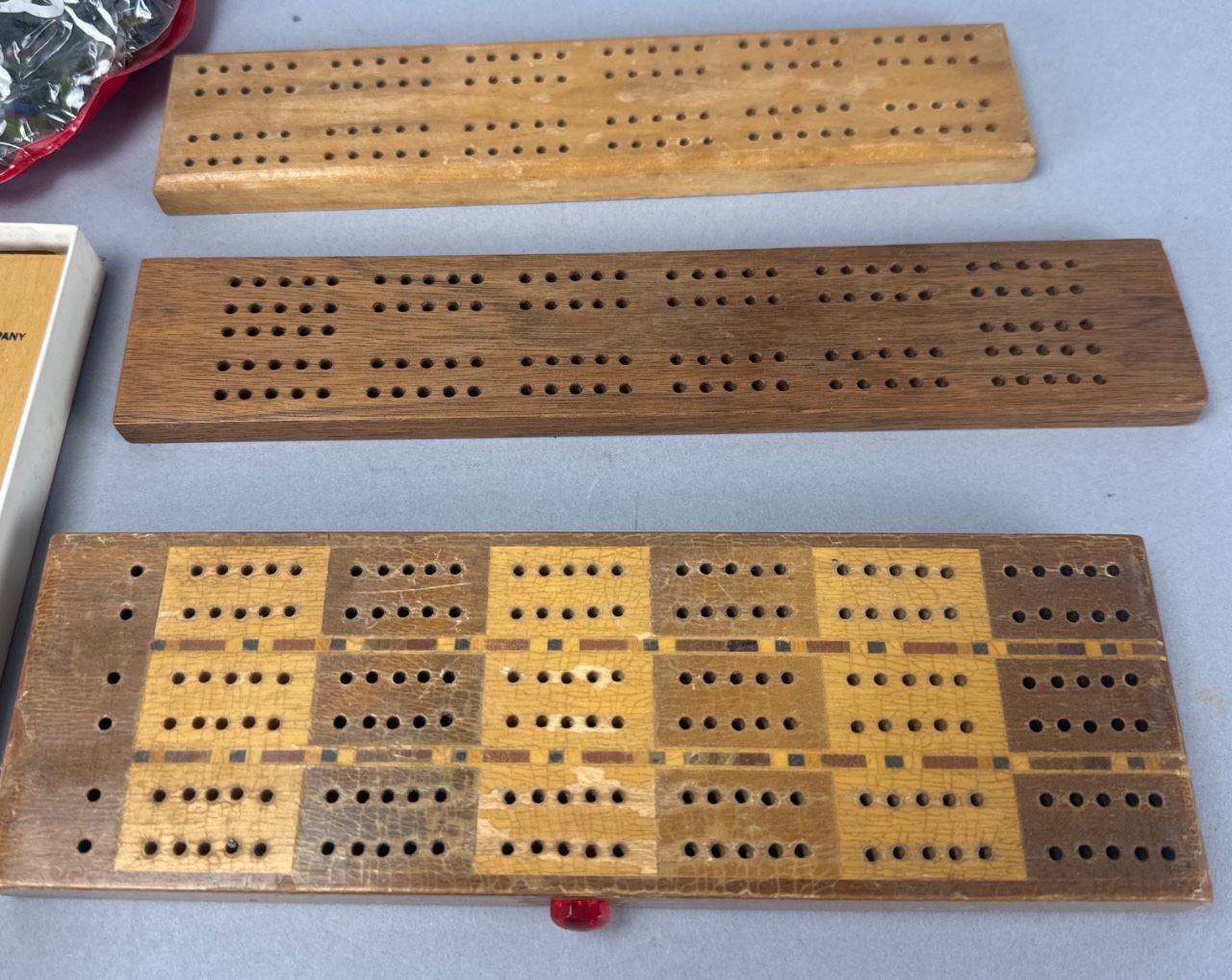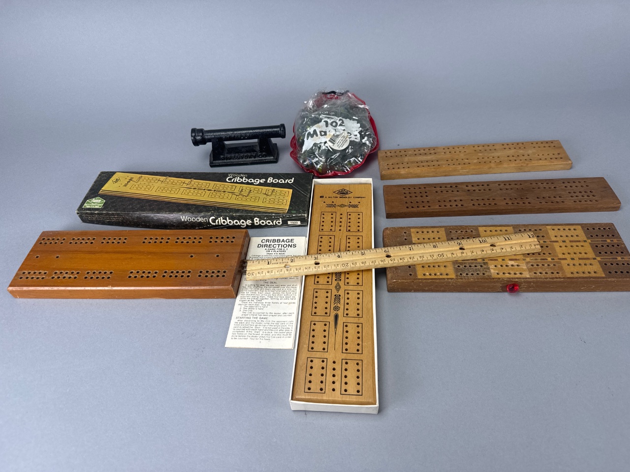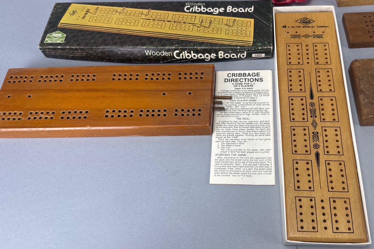 Milton Bradley Wooden Cribbage Boards, Set of 5 with Marbles