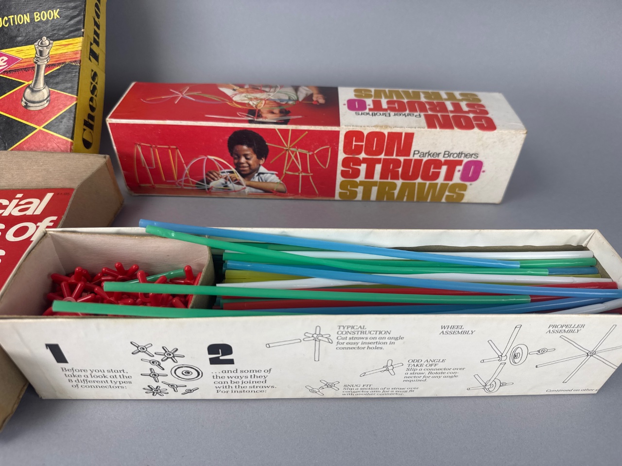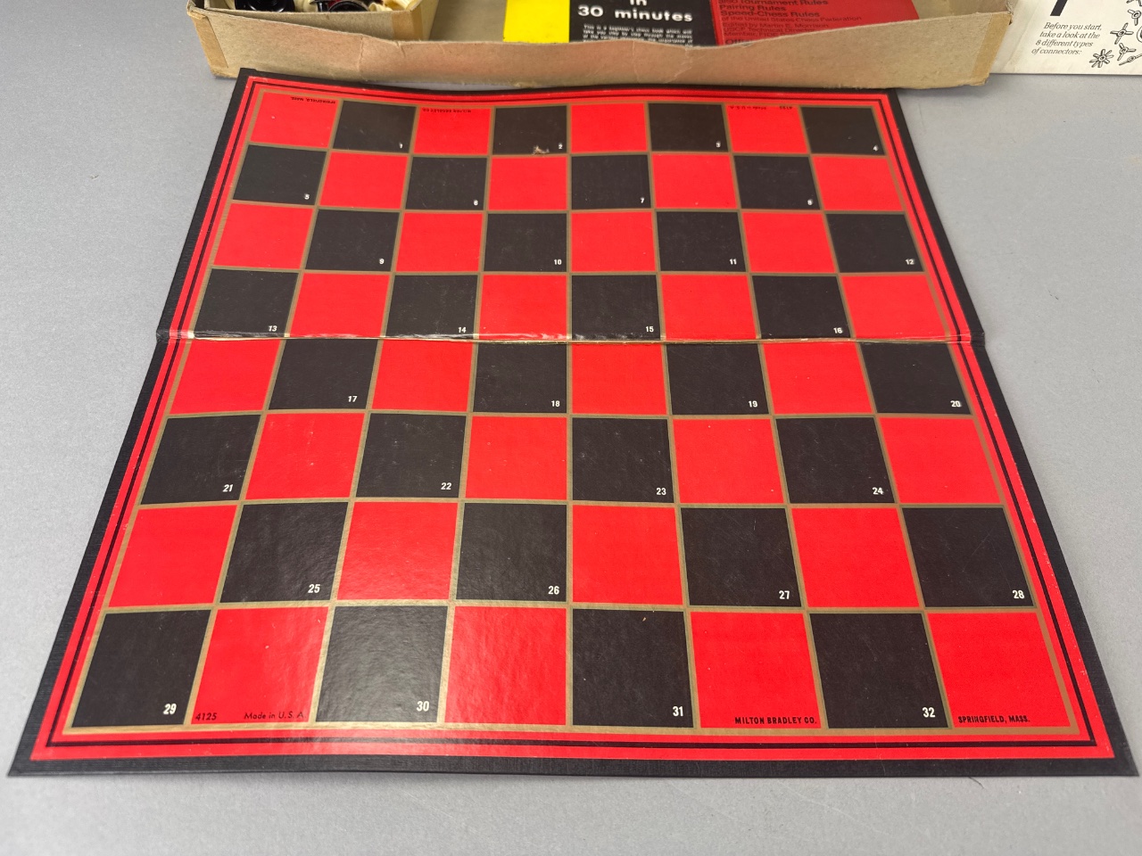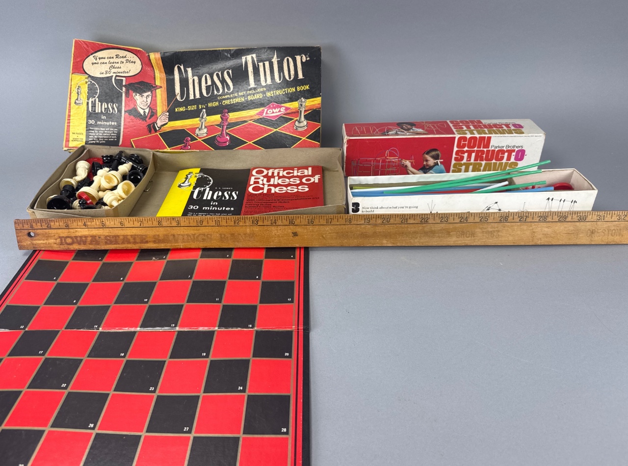 E. S. Lowe’s Chess Tutor is a chess game set designed to teach players the fundamentals of chess. The set includes chess pieces, a chess board with red and black squares, the ‘Official Rules of Chess’ book, and the ‘Chess in 30 Minutes’ instruction book. Box is open and contents are visible. Board measures 16″ wide. CONDITION: Box shows wear and tear. Chess board has a crease down the center. This game has not been evaluated to confirm inclusion of all game pieces and accessories. SHIPPING: In-House Shipping Available