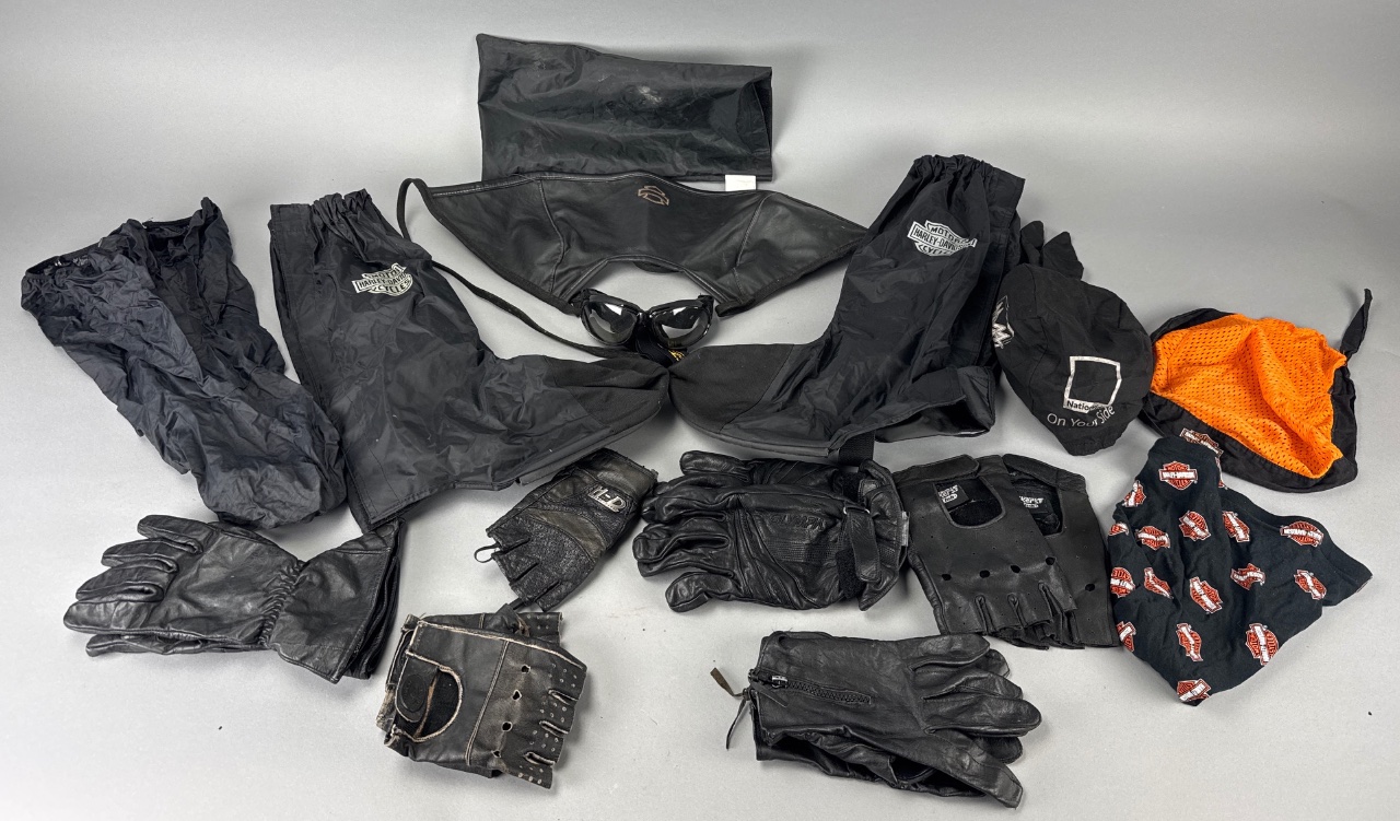 Harley-Davidson Motorcycle Gear Assortment with Gloves