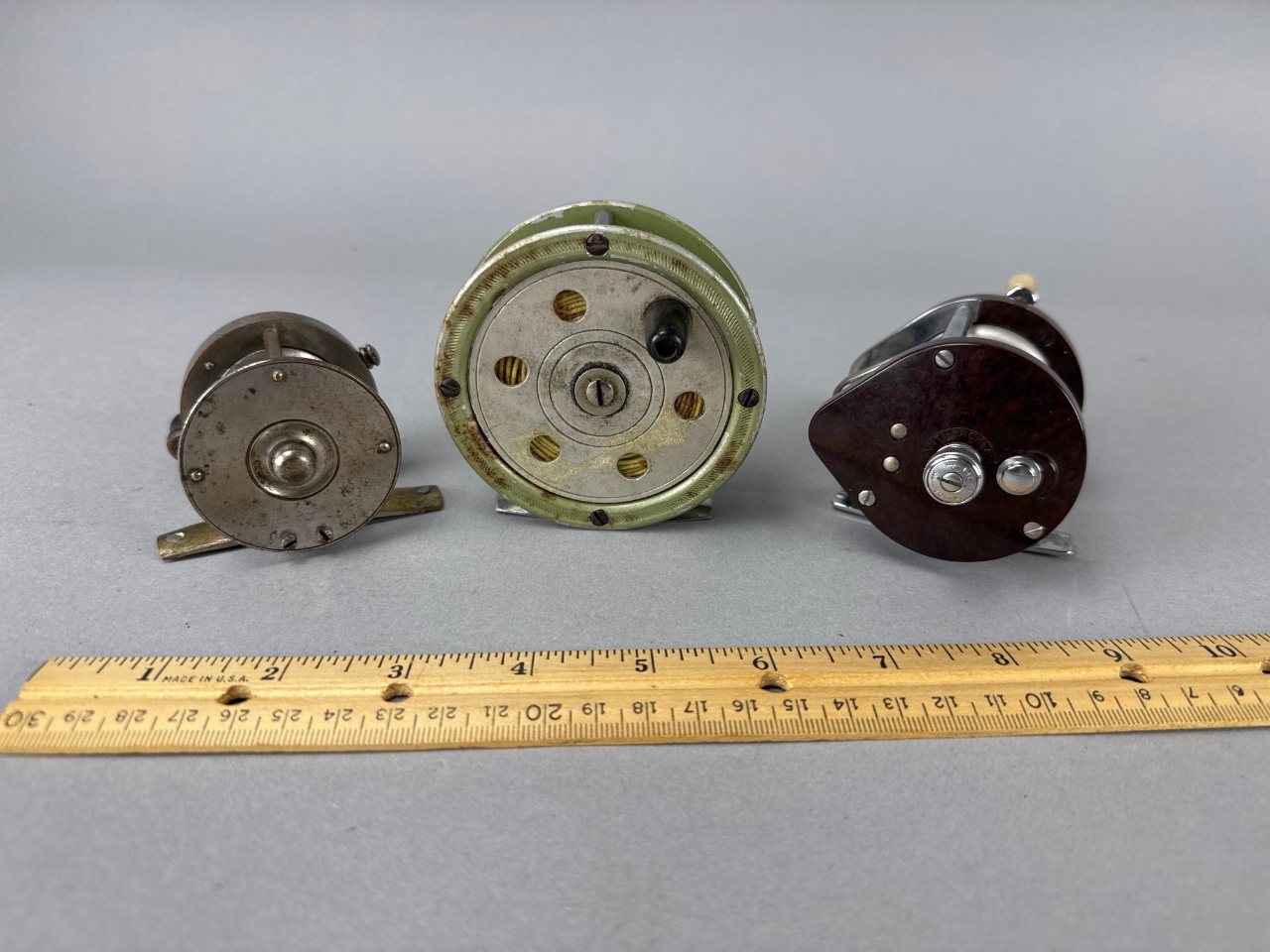Group of Three Collectible Fishing Reels, Two Marked