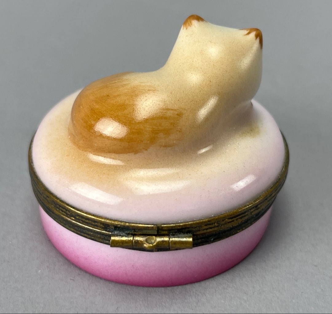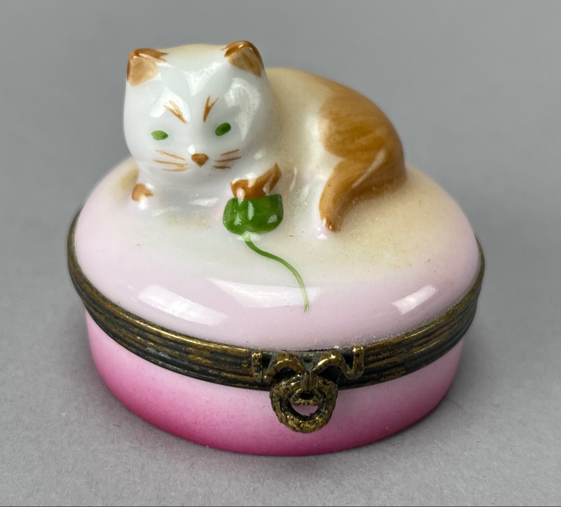 Limoges Castel Porcelain Trinket Box with Cat Lid