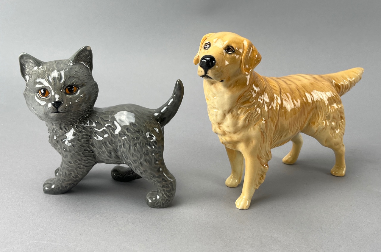 Beswick Ceramic Dog and Cat Figures with Glossy Finish