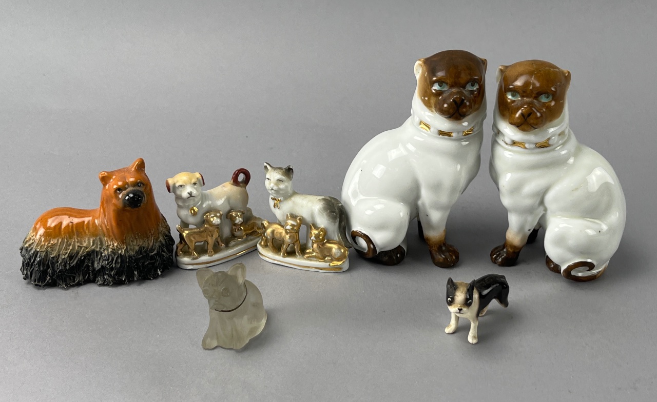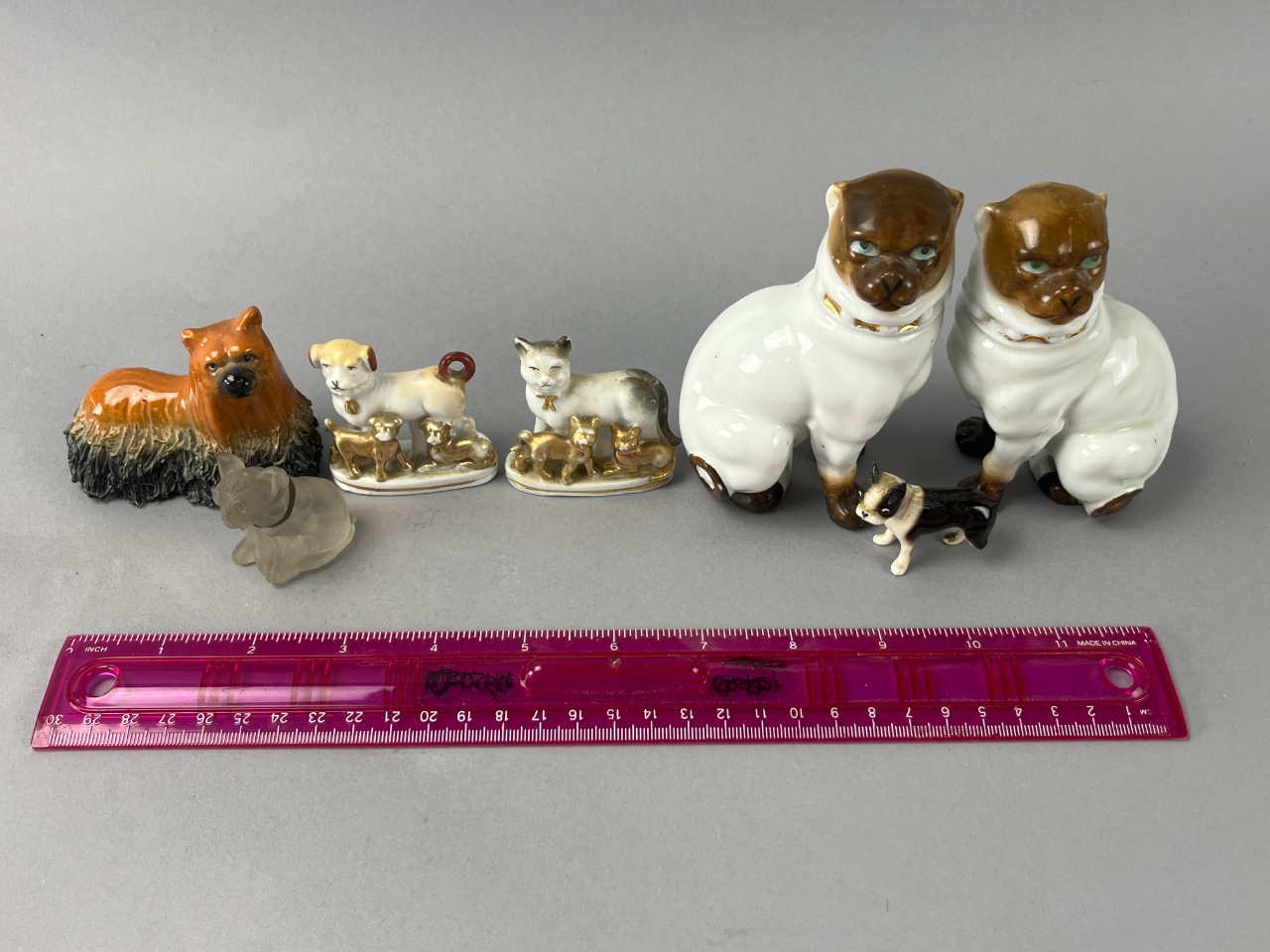 Assorted Animal Figurines, Cats and Dogs, Ceramic and Glass