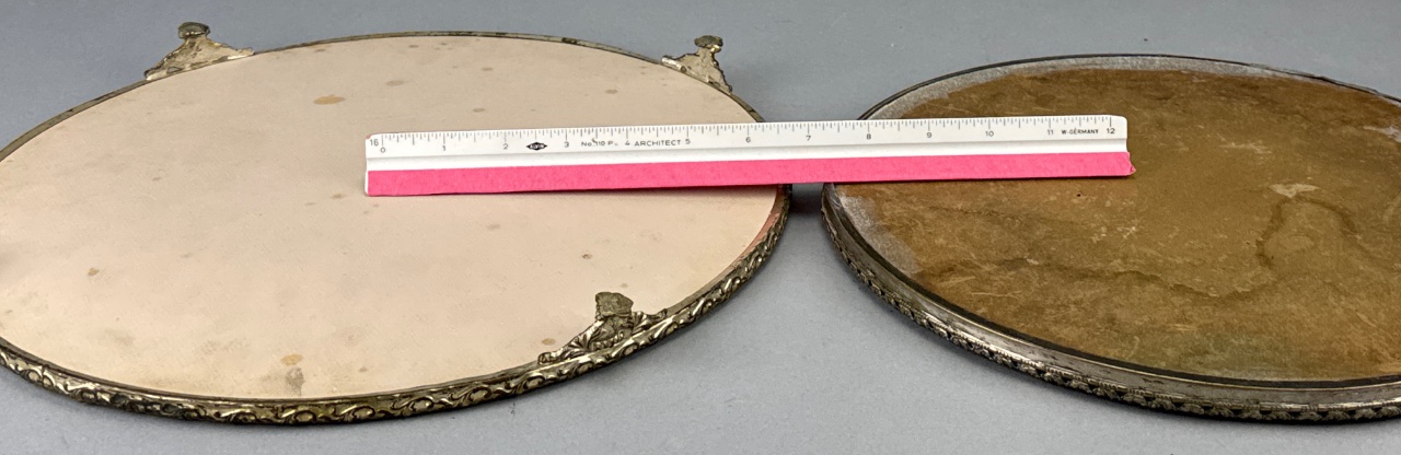 Pair of Ornate Metal Mirrors with Gold-Tone Border