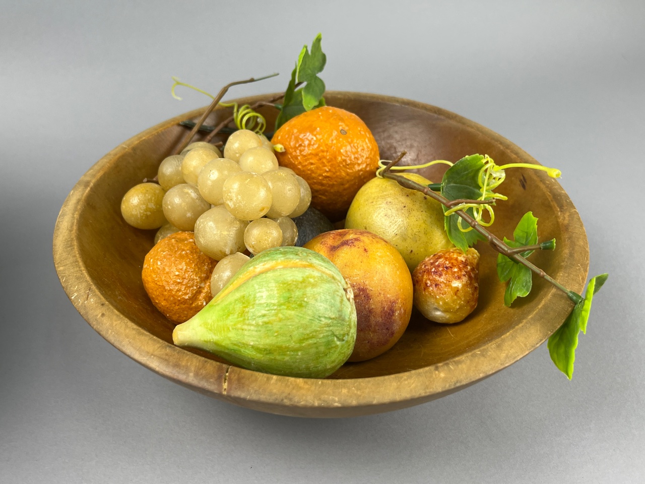 Decorative Wooden Bowl Set with Faux Fruit