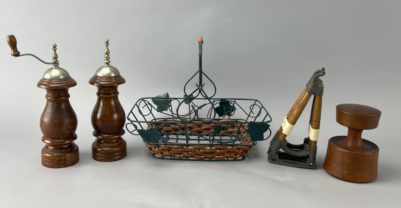 Kitchen Collectibles: Pepper Mills, Basket, Nut Chopper