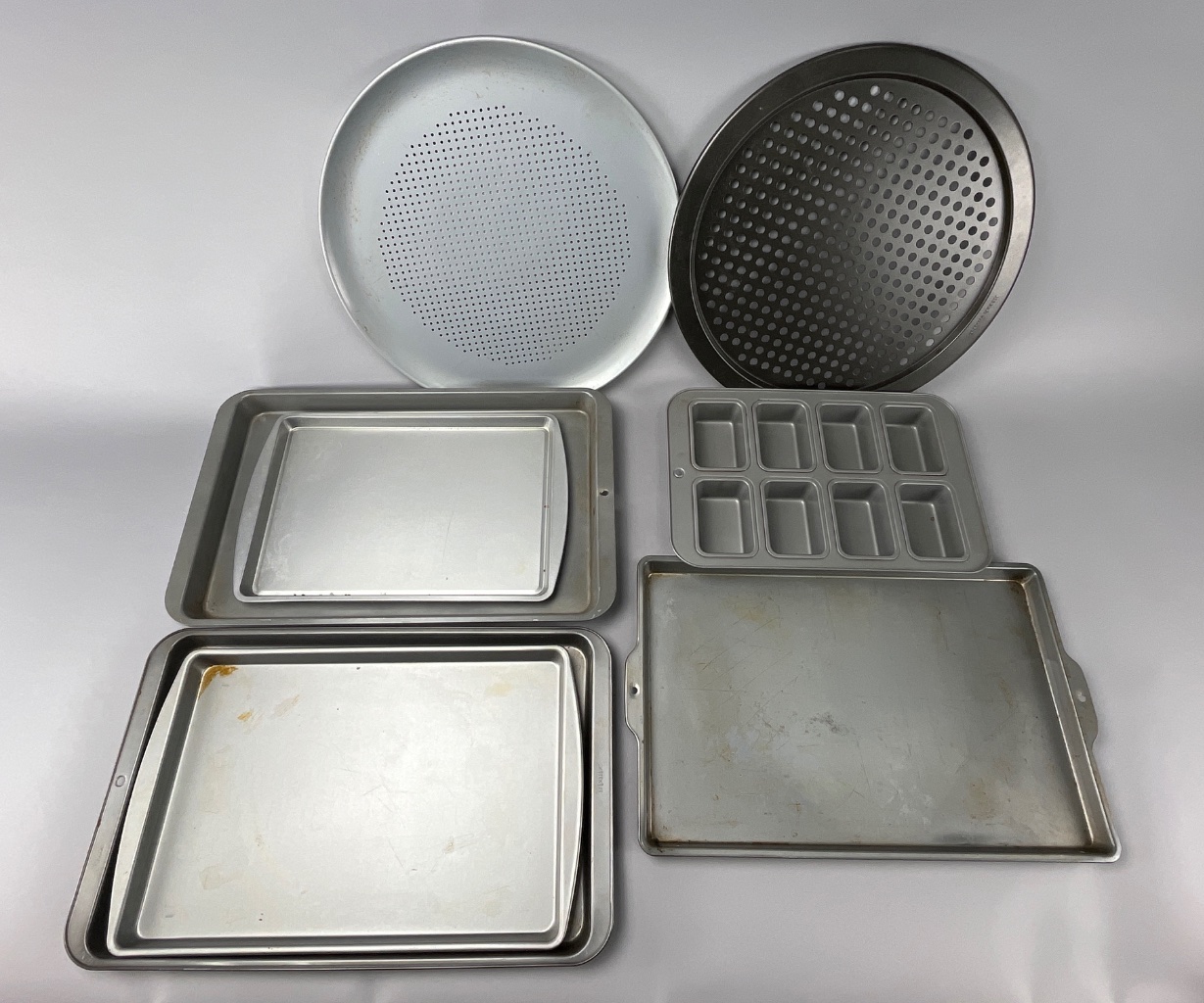 Assorted Metal Baking Pans with Perforated Pizza Pan