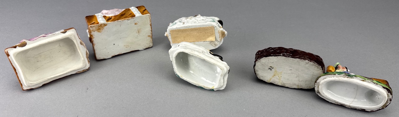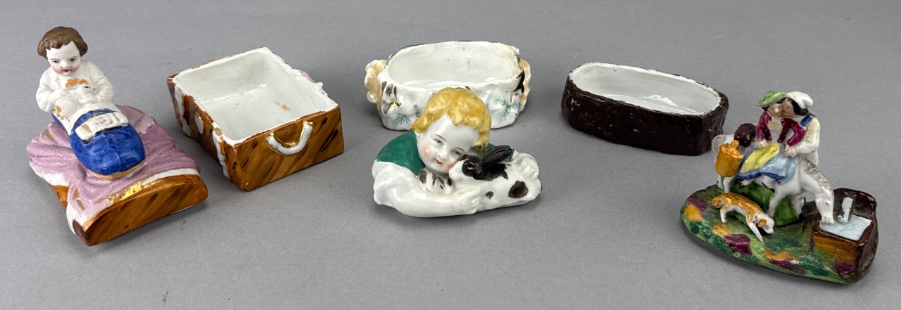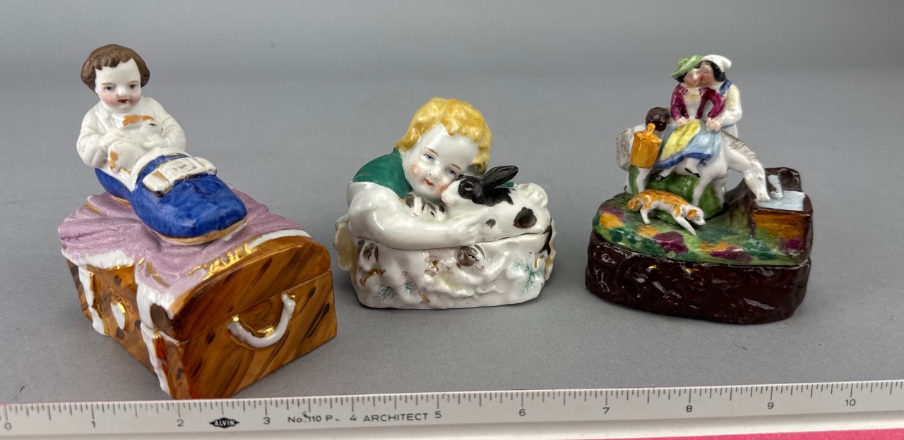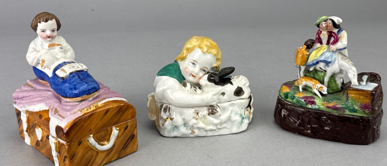 Grouping of Porcelain Trinket Boxes with Figures