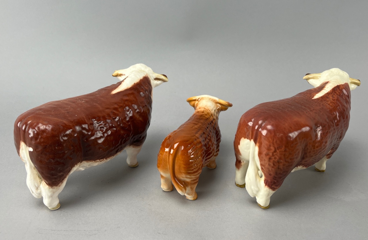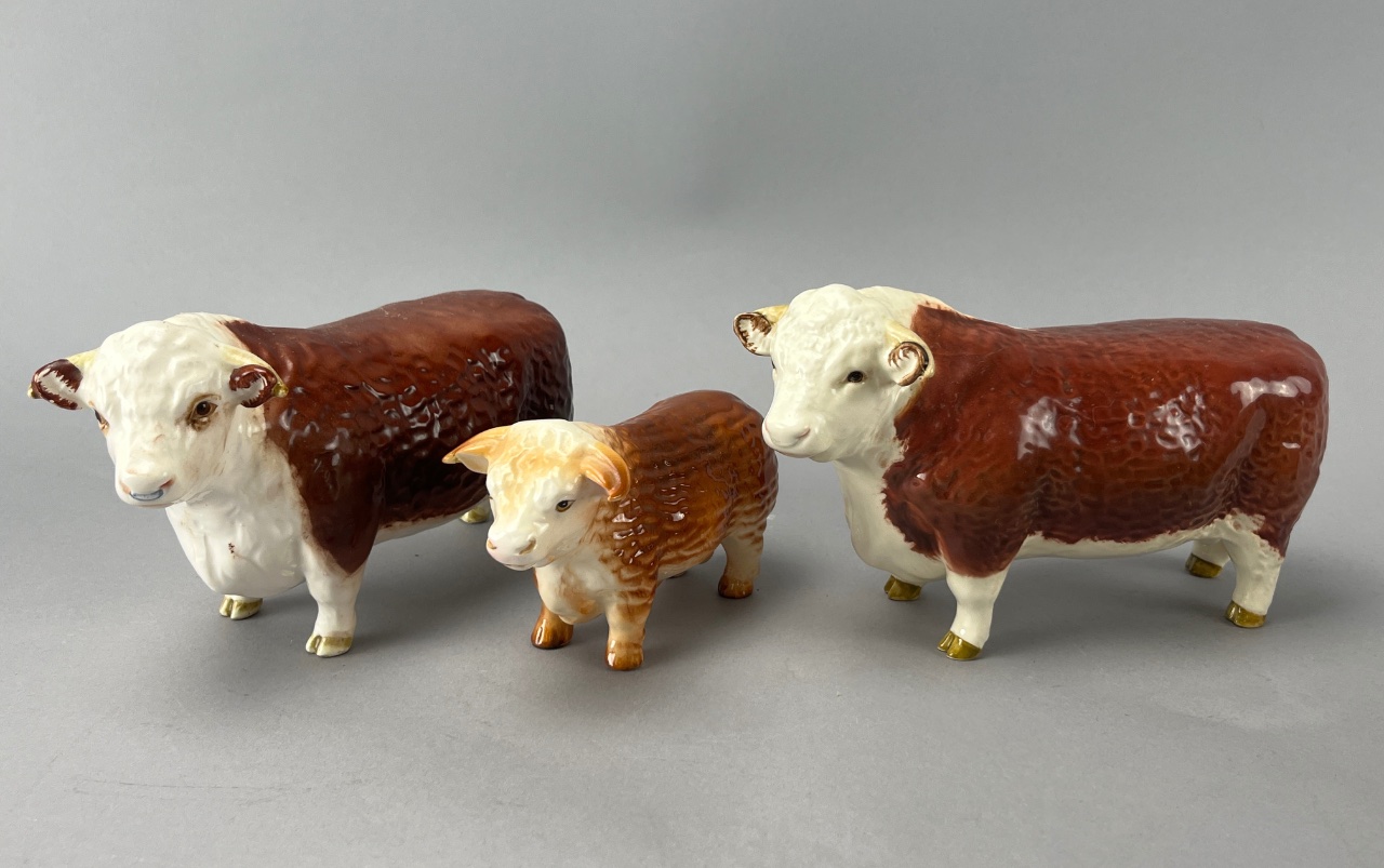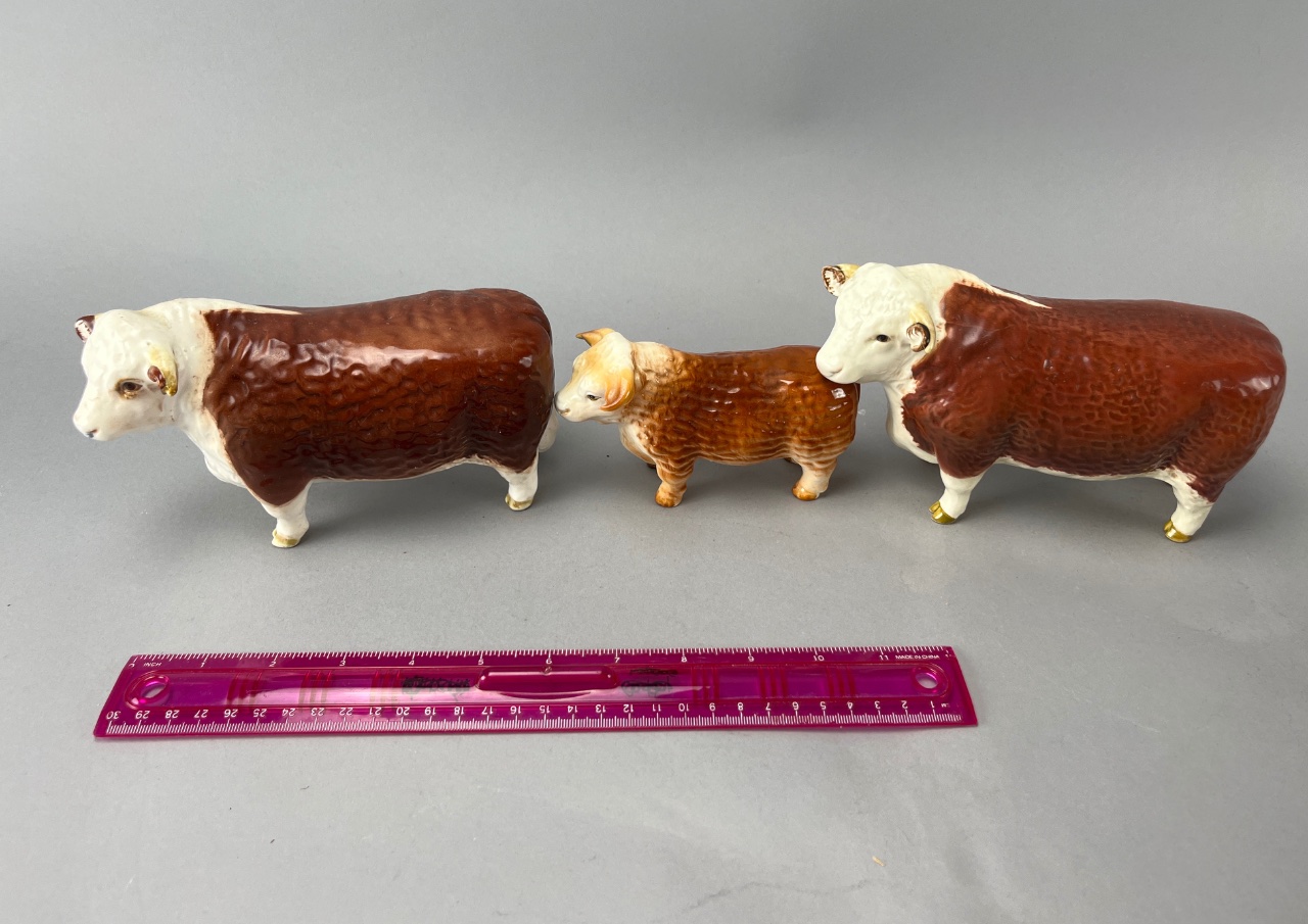 Beswick Ceramic Cattle Figures, Set of Three, Glossy Finish